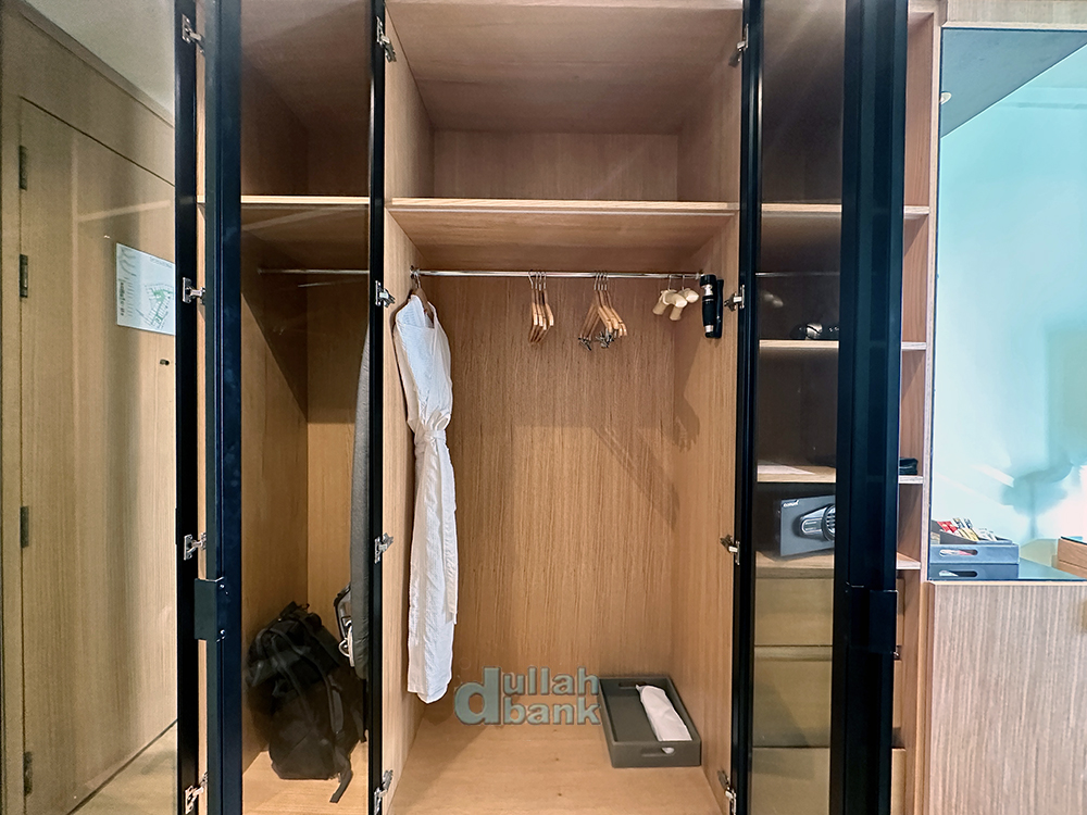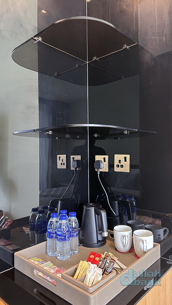 옷장 옆에는 물과 커피/티세트가 놓여 있습니다. 그 아래엔 미니바가 있는데, 비어있더군요.