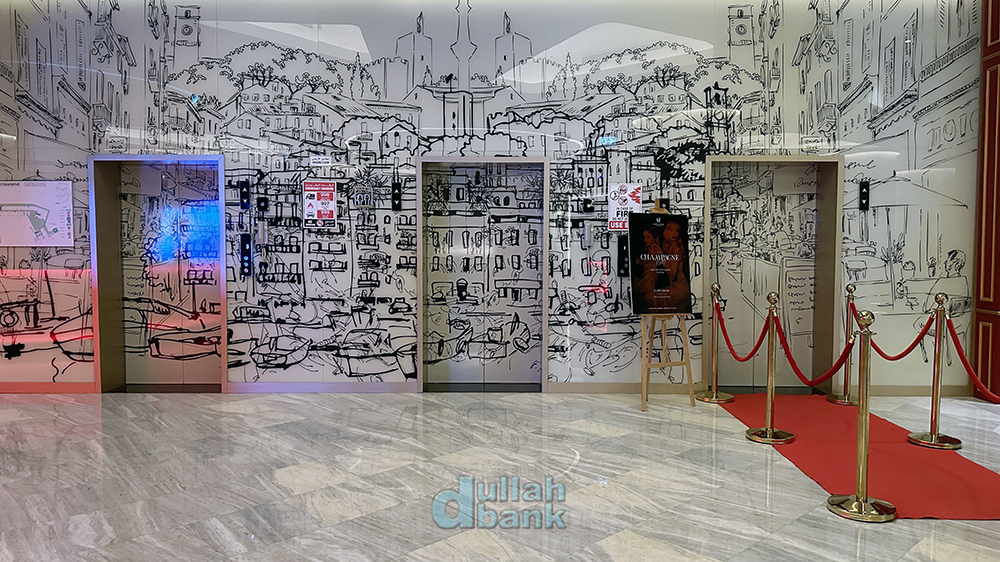 마지막으로 남은 시설인 샴페인 바는 호텔 지하에 있습니다. 로비에 호텔 내 세 대의 엘리베이터 중 가장 오른쪽에 있는 엘리베이터로만 갈 수 있는데...