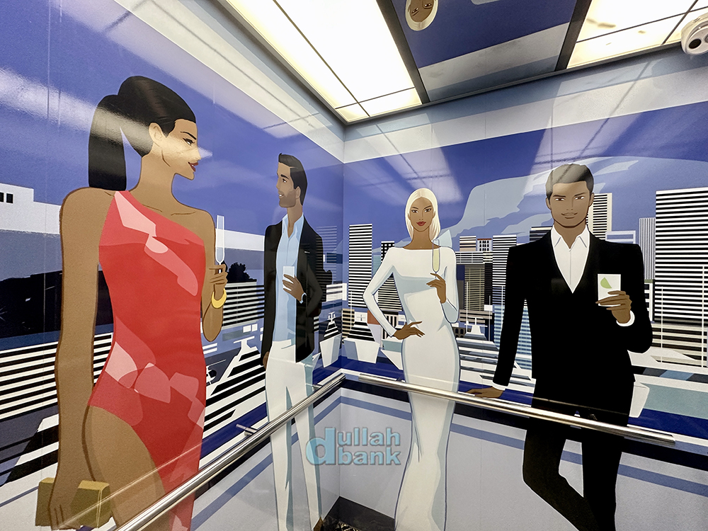 엘리베이터 앞에 레드 카펫이 깔려있을 때가 바로 바의 운영시간입니다.