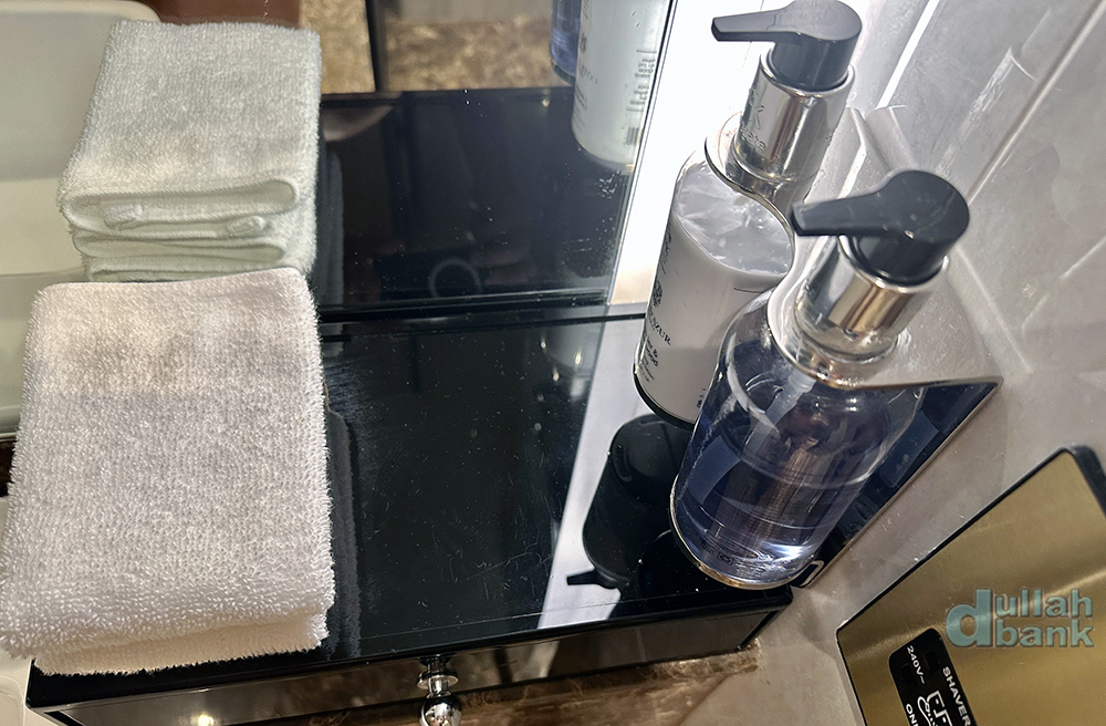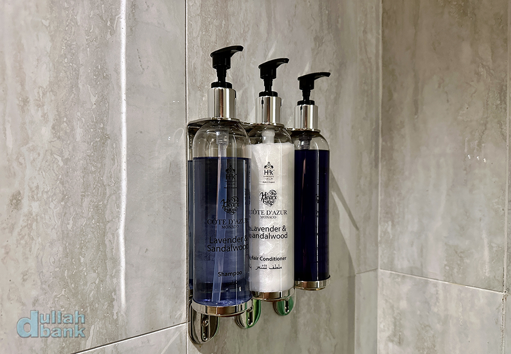 샤워실 어메니티는 신상 호텔의 트렌드인 벽 고정형입니다.
