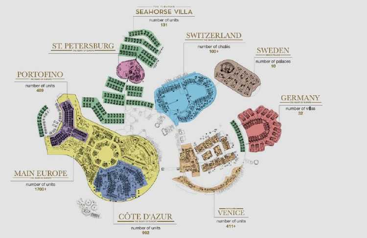 2000년대 후반 월드 아일랜드의 섬들을 매입하며 개발을 약속했던 디벨로퍼들이 하나둘씩 나가떨어지는 가운데서도 더디지만 10년 넘게 개발이 꾸준하게 진행 중인 유일한 대형 프로젝트가 바로 두바이에 본사를 둔 오스트리아 디벨로퍼 클라인딘스트 (Kleindienst)의 하트 오브 유럽 (The Heart Of Europe)입니다.