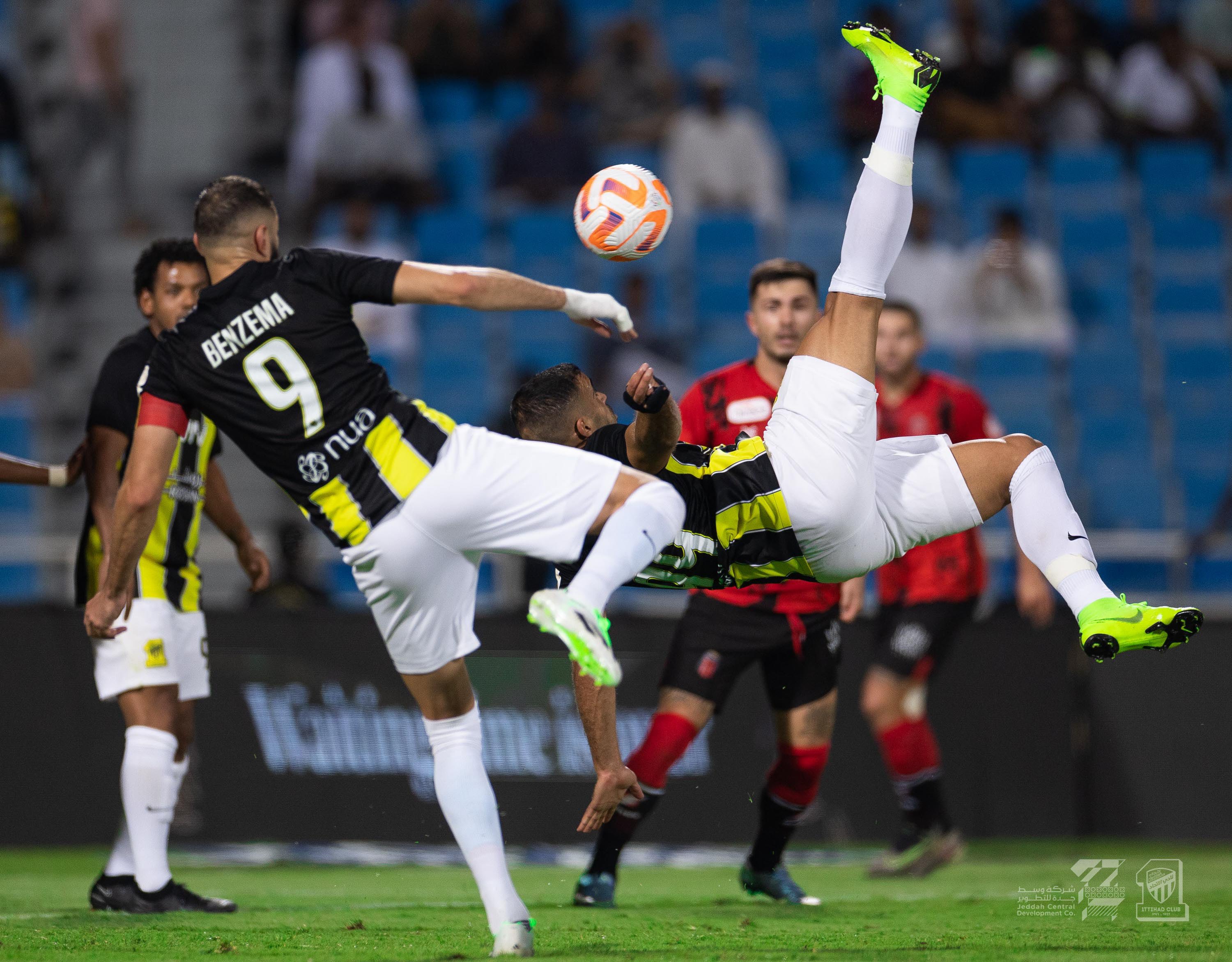 4) 알잇티하드는 사우디 리그 데뷔골을 터뜨린 카림 벤제마와 압둘라작 함달라의 멀티골 등을 묶어 0대4 대승을 거두고 3연승으로 리그 선두를 달렸습니다. 특히 주장 완장을 찬 카림 벤제마는 압둘라작 함달라와의 갈등설을 의식한 듯 페널티킥 상황에서 그에게 키커 자리를 양보했으며, 두 경기 연속 클린시트를 기록 중이던 마르셀로 그로헤 골키퍼는 후반 막판에 허용한 페널티킥을 선방해내며 세 경기 연속 클린시트 기록을 이어갔습니다.