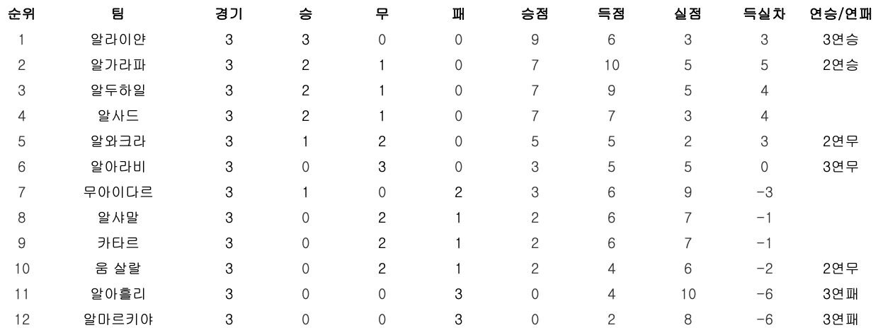 알아라비 3:3 알두하일 (9월 2일 18:15/ 알쑤마마 스타디움)