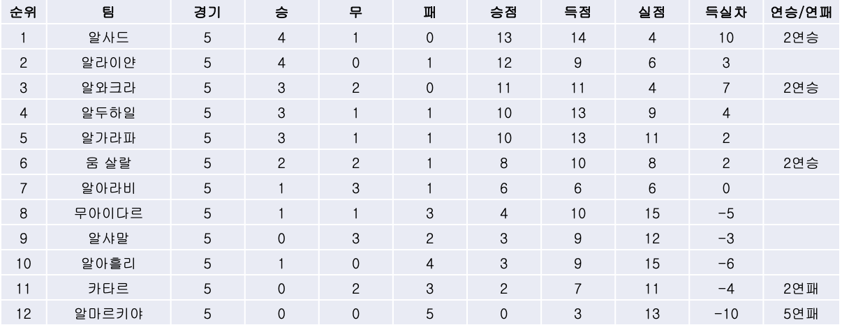 2. 리그 순위