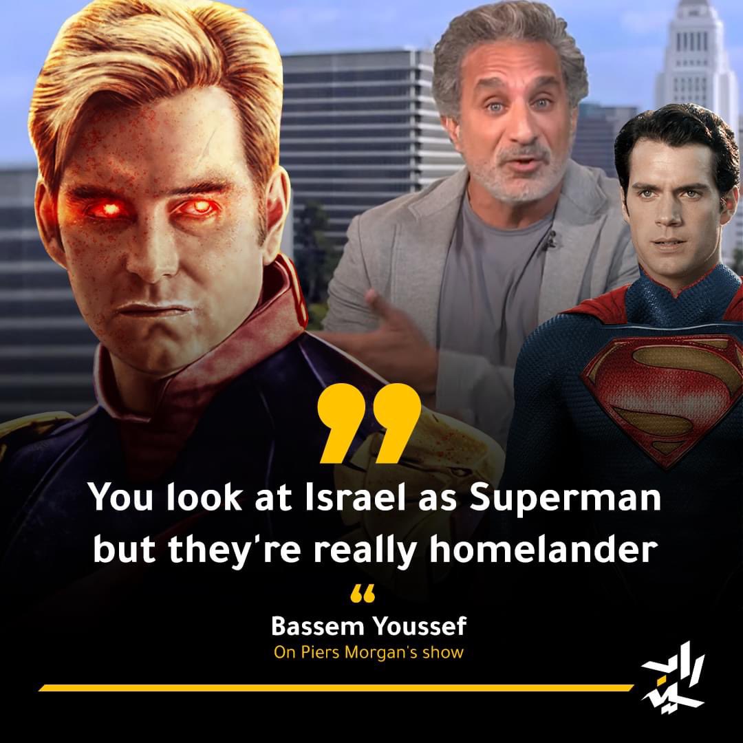 그는 미국 만화 속 캐릭터를 통해 이스라엘을 슈퍼맨이 아닌 홈랜더에 비유했죠. 슈퍼맨을 모티브로 삼았다는 슈퍼 히어로지만, 정작 슈퍼맨이 가진 윤리의식이나 도덕감 따위는 전혀 찾아볼 수 없는 슈퍼 히어로의 탈을 쓴 슈퍼 빌런. 이는 이스라엘과 일심동체인 미국에게도 마찬가지로 적용할 수 있는 비유가 아닐까 싶네요.