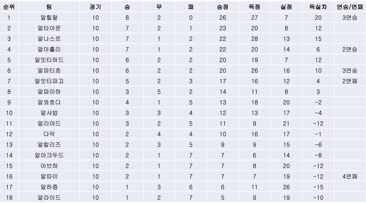 2. 리그 순위