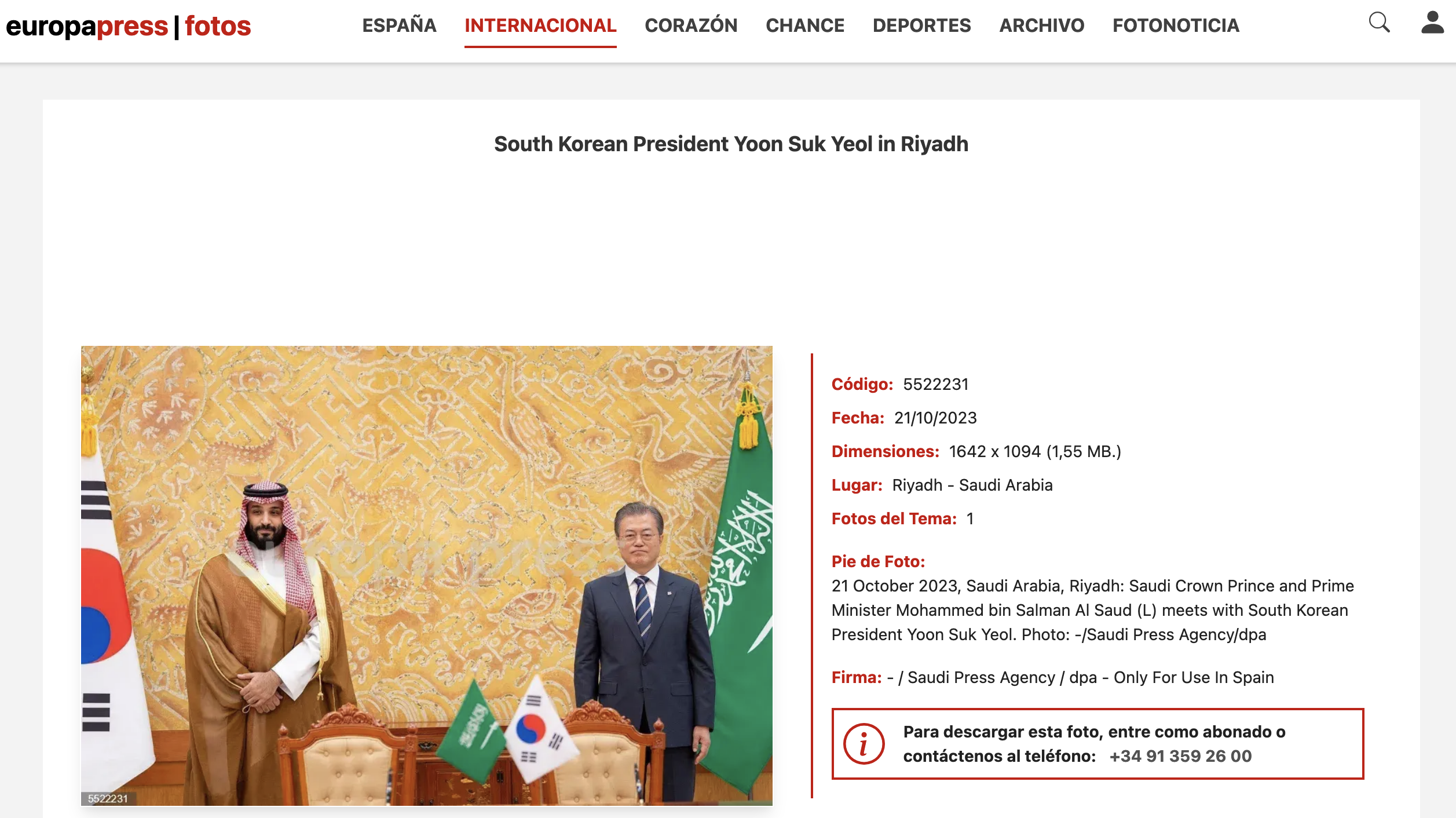 사우디 관영통신이 사진을 잘못 올린 사진을 급교체하는 해프닝의 여파는 정작 스페인에선 참사로 돌변했는데, europapress가 이 문제의 사진을 윤석열 대통령의 리야드 도착 소식에 얹어 올렸다는 것!!!!!!