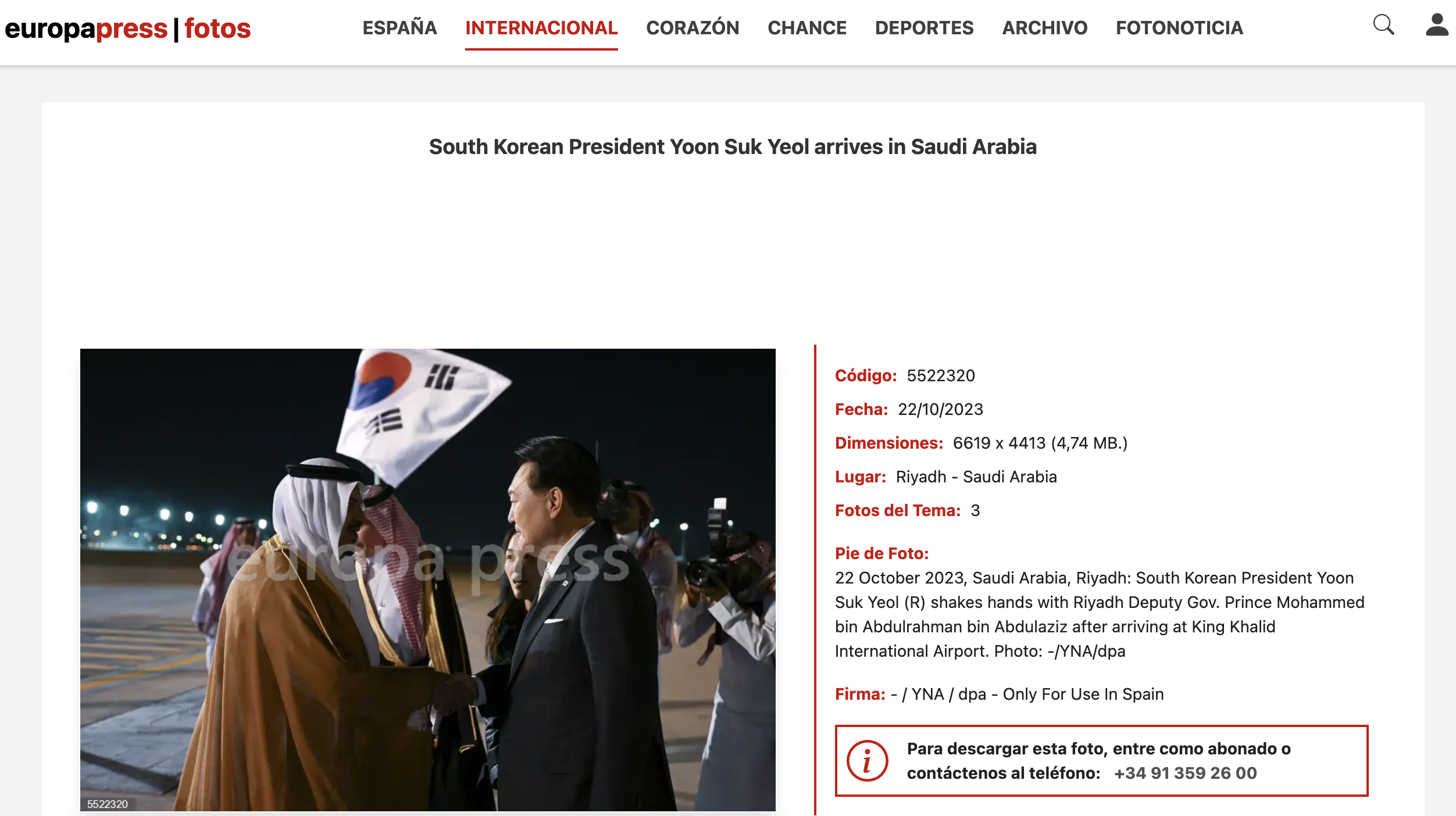 사우디 관영통신이 사진을 잘못 올린 사진을 급교체하는 해프닝의 여파는 정작 스페인에선 참사로 돌변했는데, europapress가 이 문제의 사진을 윤석열 대통령의 리야드 도착 소식에 얹어 올렸다는 것!!!!!!