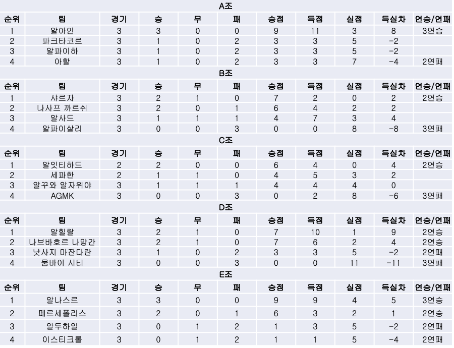 | 알잇티하드 (사우디) | 알꾸와 알자위야 (이라크) |