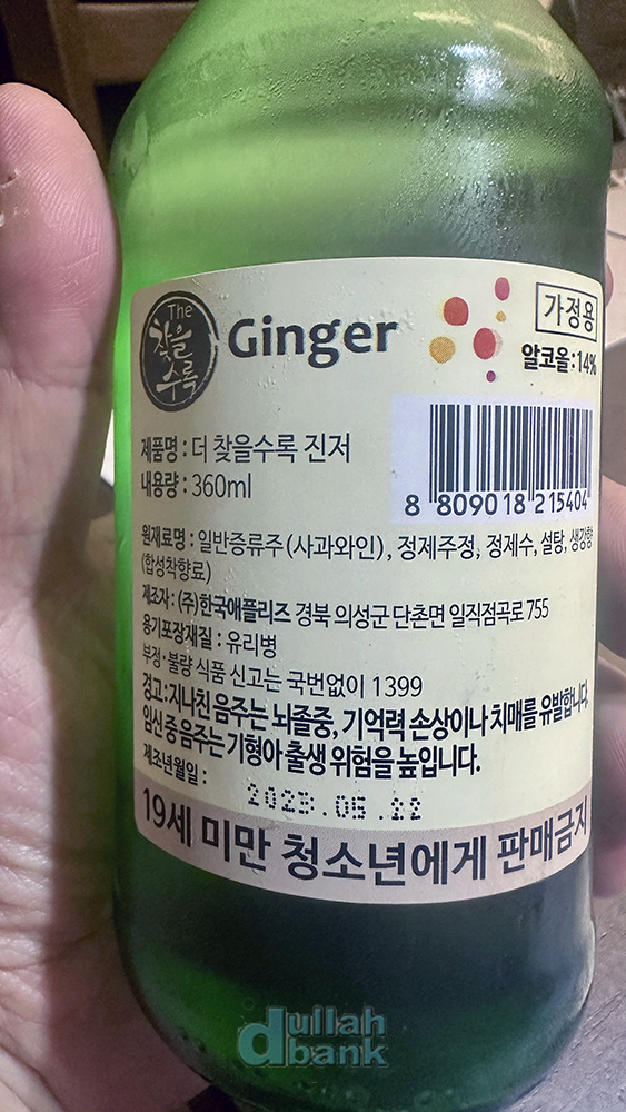 막걸리와 같은 진열대에 놓인 신상 과일주를 보게 되었습니다. 병은 낯익은 소주병인데, 이름은 지금까지 47년을 살면서 단 한 번도 들어본 적도 없는 한국 술. 직원에게 물어보니 몇 주 전에 들여왔다는군요.
