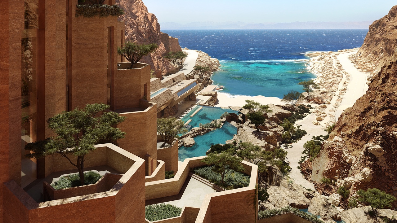 네옴의 첫 아까바만 휴양지 레이자는 협곡 사이에 둘러쌓인 생태 휴양지였고,