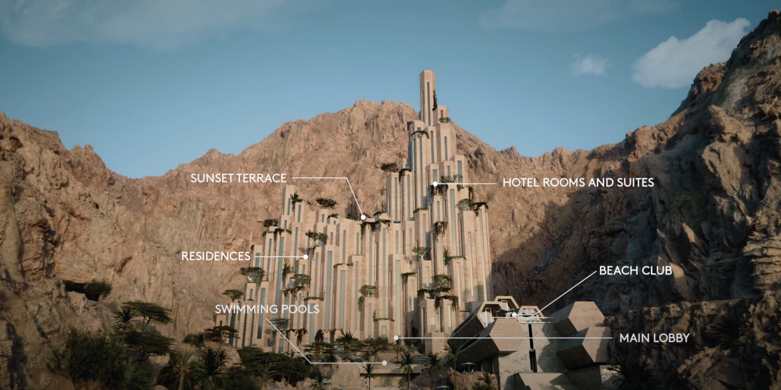 에피콘 발표 후 2주만에 공개한 시라나는 앞으로는 바다, 주위엔 산과 와디로 둘러쌓인 곳에 자리잡은 휴양지입니다.