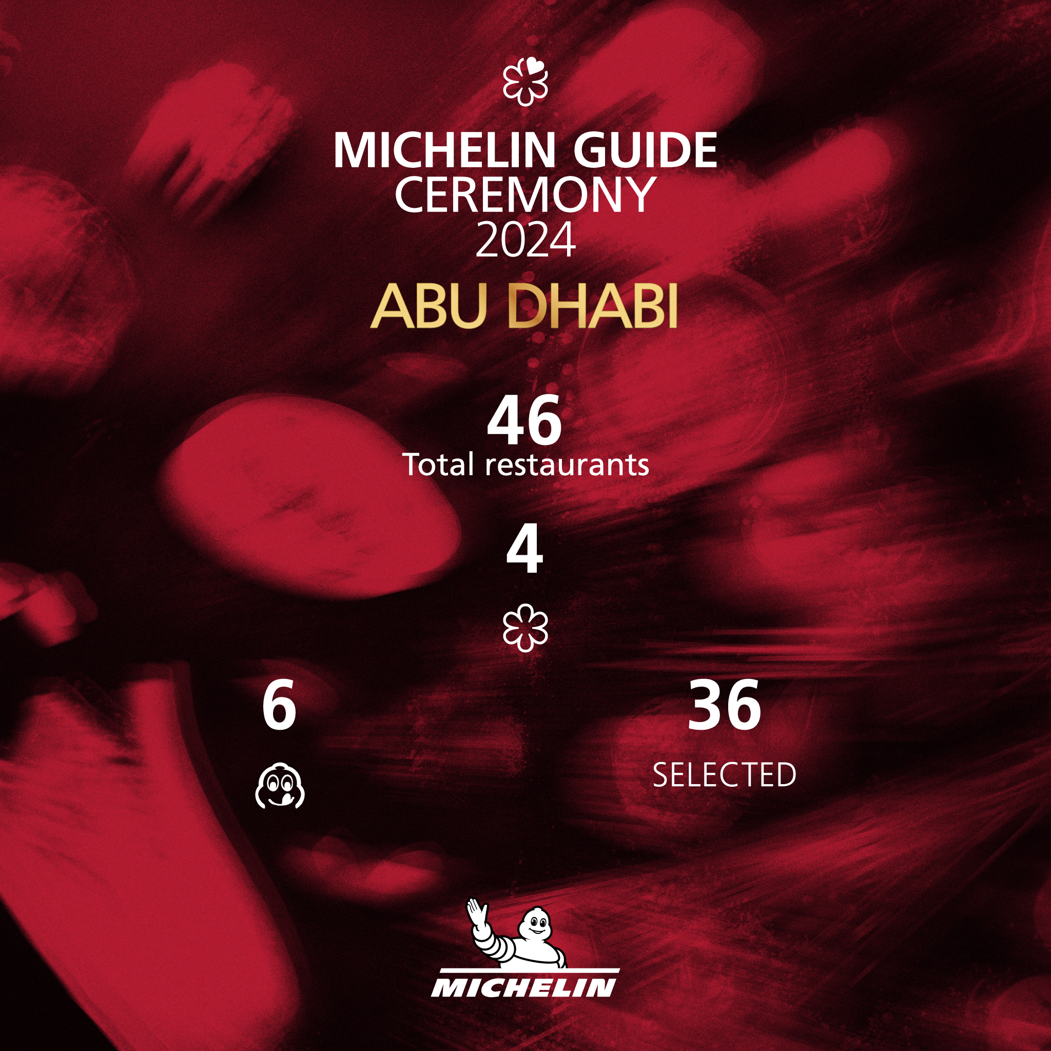 미슐랭 가이드는 아부다비 관광청과 손잡고 지난해 11월 10일 에미레이츠 팰리스에서 아부다비 에디션 2023 발표식을 가진 후 13개월 만인 12월 7일 루브르 아부다비에서 아부다비 에디션 2024를 발표했습니다..
