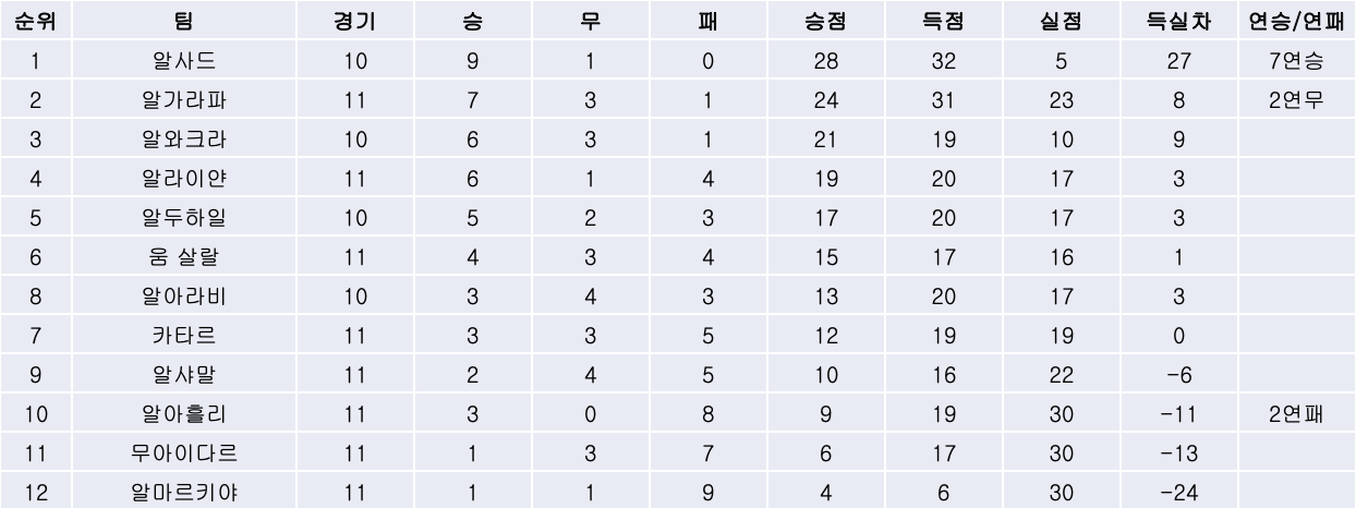 | [23/24 ESL 11R] 알사드, 파죽의 6연승으로 전반기 마지막 라운드에서 선두로 올라서! (0) | 2023.12.11 |