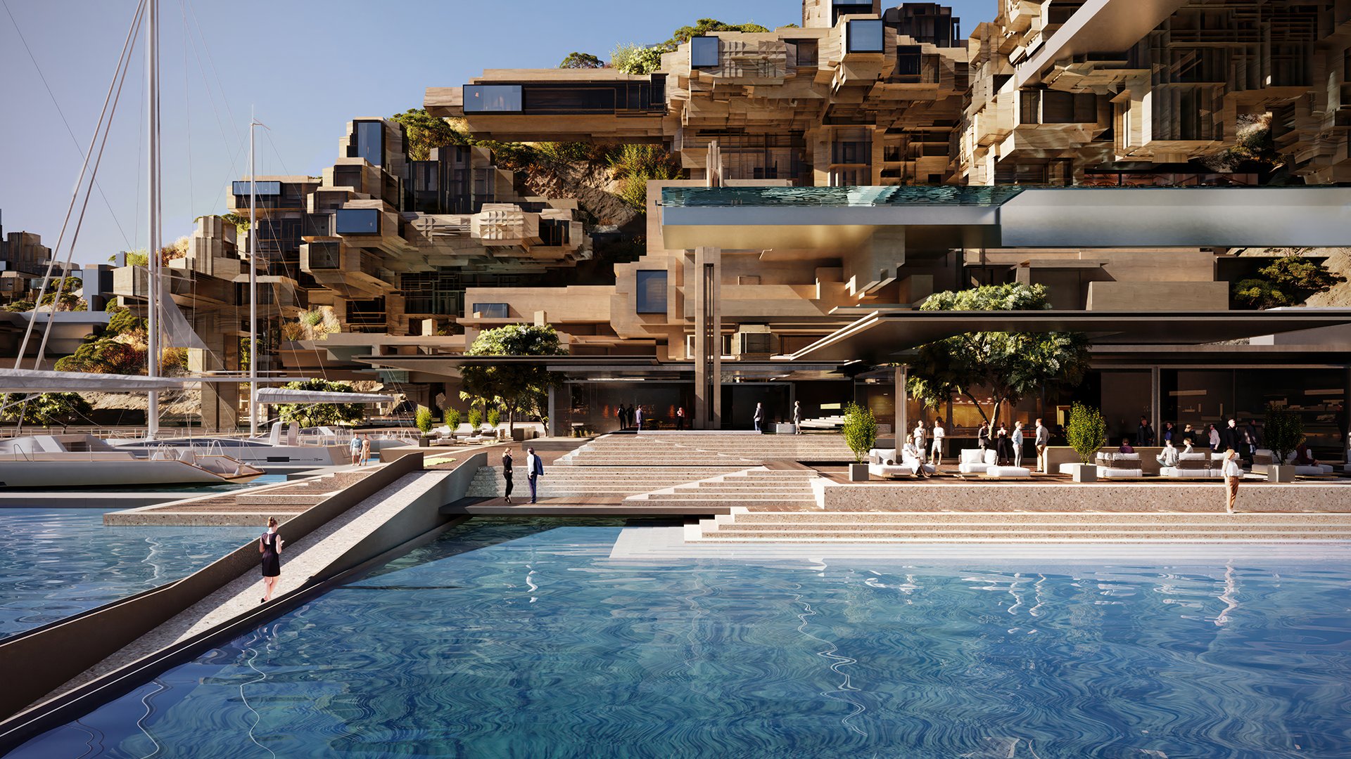 주민과 투숙객이 이용할 수 있는 수상 택시 서비스 및 슈퍼 요트의 국제적인 허브가 될 최첨단 시설을 갖춘 120대를 수용할 수 있는 선착장과 슈퍼 요트 애호가들을 위한 전용 멤버스 클럽 같은 해상 시설은 물론