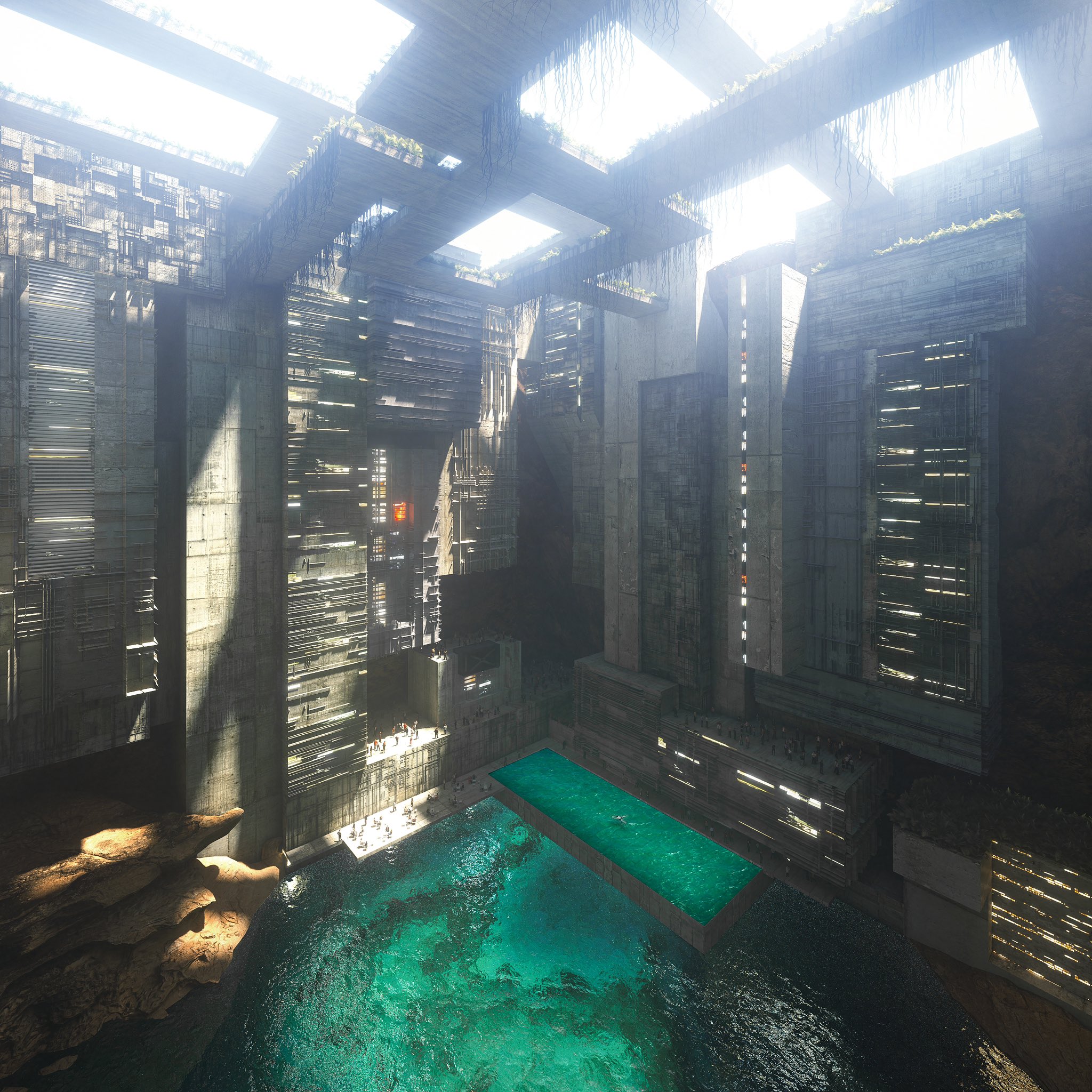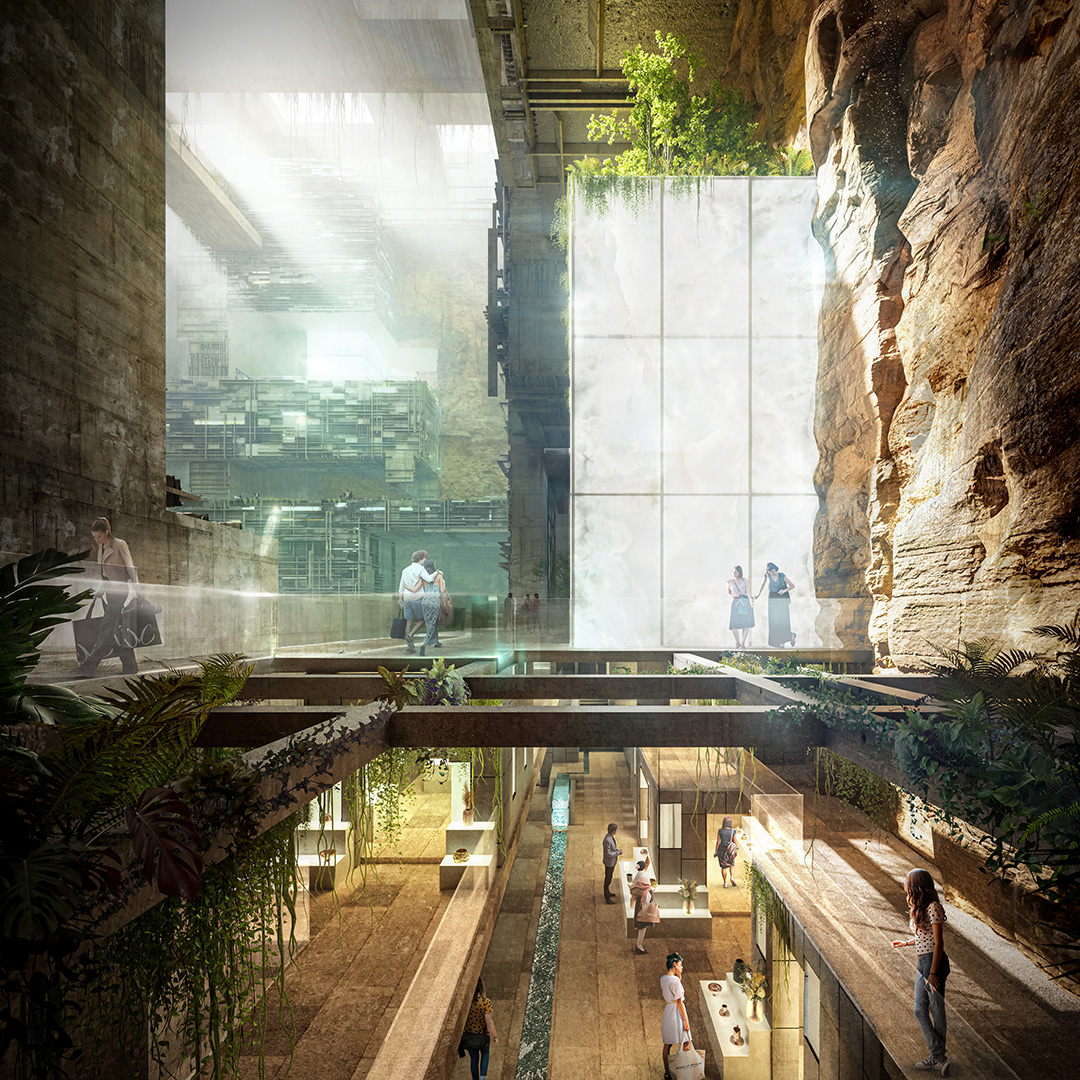 생기는 정육면체의 빈 공간에 호텔, 아파트, 매장, 레저 및 엔터테인먼트 구역 등이 들어선 수직도시를 만들겠다는 컨셉이기 때문입니다.