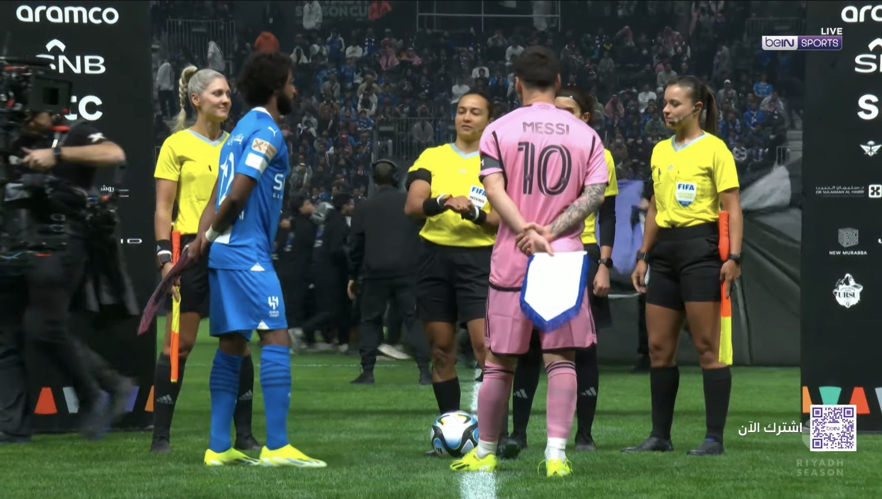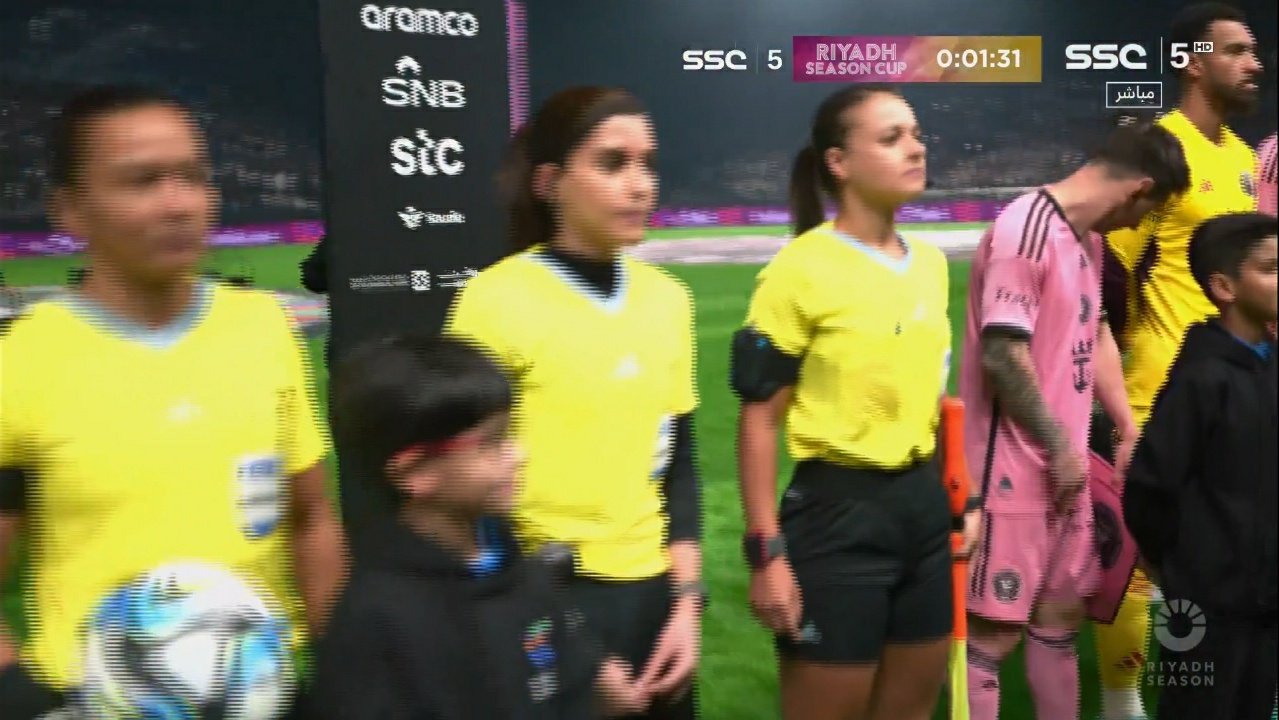 5) 사우디가 여성 인권과 차별에 대한 일반적인 외부의 인식을 의식한 듯 지난 FIFA 클럽 월드컵 개막전처럼 상징성있는 시합의 경우 여성 심판진을 쓰는 경향이 있는데, 리오넬 메시를 모신 가운데 펼쳐지는 킹덤 아레나의 개장 기념 경기에도 브라질 주심 에디나 알베스 바티스타가 이끄는 여성 심판진이 경기를 이끌었습니다.