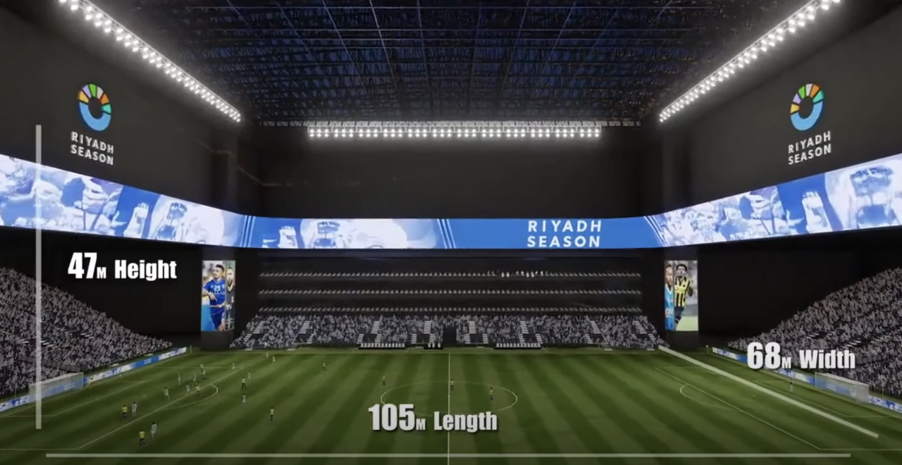 사우디 최초의 실내 축구장이기도 한 킹덤 아레나는 일정에 따라 트랙이 없는 풀사이즈의 축구전용경기장과 복싱, UFC 등 격투기 대회의 경기장으로 사용될 예정입니다.