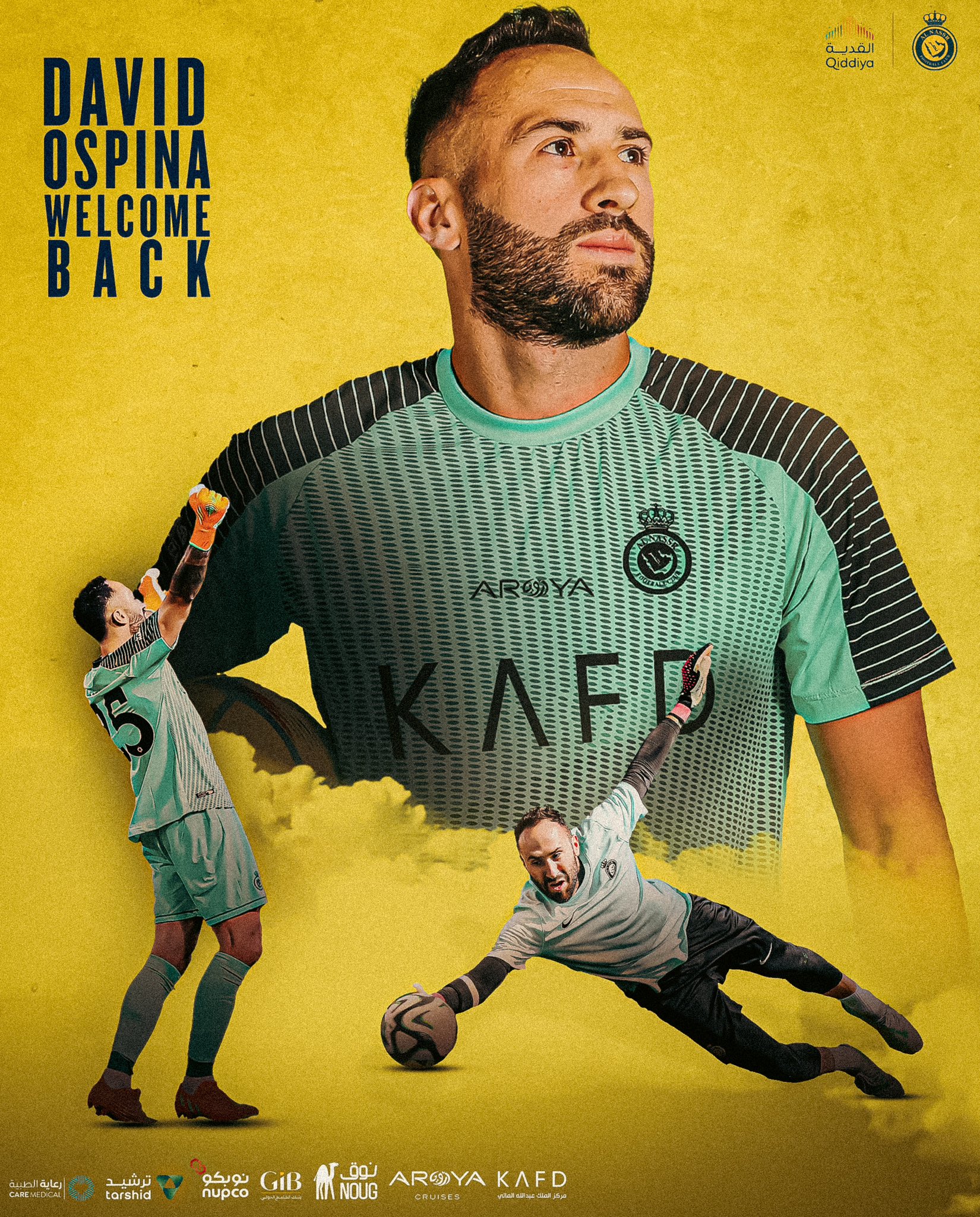 5) 알나스르는 인터 마이애미와의 경기를 앞두고 1년 전 리그 경기에서 팔꿈치 뼈가 부러지는 중상을 입고 전력에서 이탈했던 다비드 오스피나 골키퍼의 복귀를 전격 발표했습니다. 그의 전력 이탈 후 알나스르는 외국인 골키퍼를 영입하지 않았었죠.