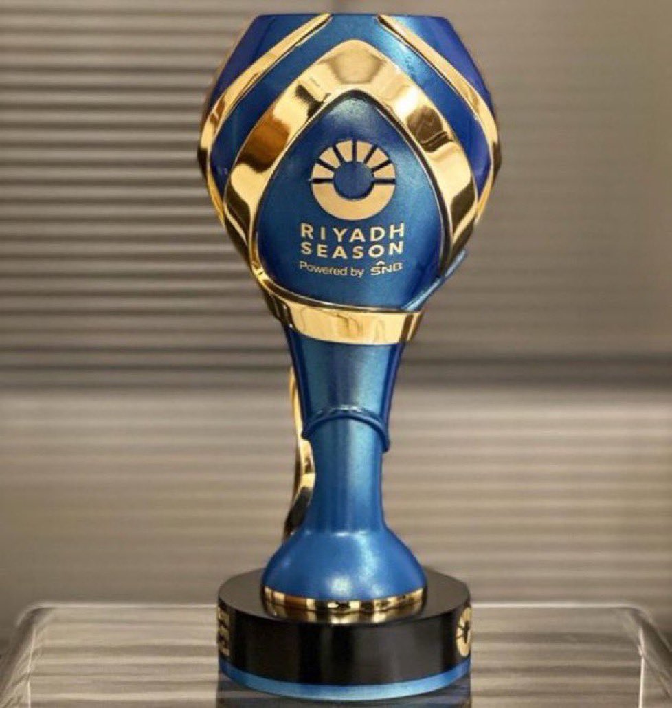 리야드 시즌 컵 우승 트로피를 들어올리고,