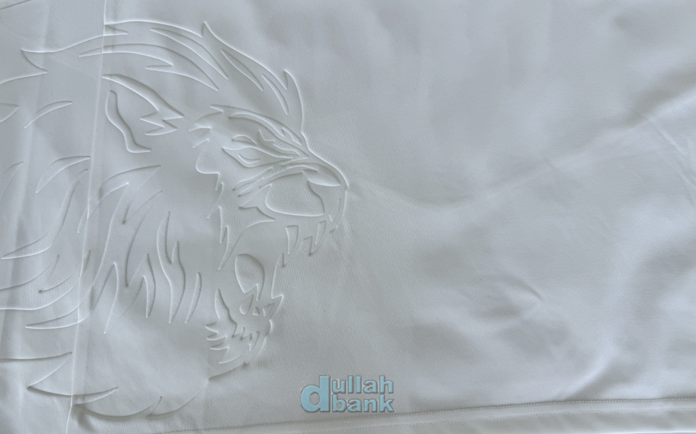 샤르자 저지는 다른 저지와 달리 별도의 인증마크 대신 착용했을 때 오른쪽 옆구리에 구단의 상징 동물인 사자가 새겨져 있어 다소 밋밋할 수 있는 흰색 저지에 포인트를 주었습니다. 당연히, 검은색인 원정 저지에는 없습니다.