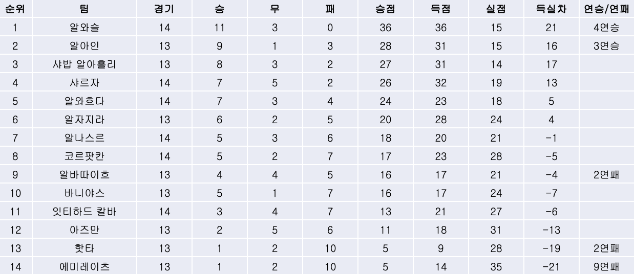 에미레이츠 0:2 알와슬 (2월 24일 17:30/ 에미레이츠 클럽 스타디움)