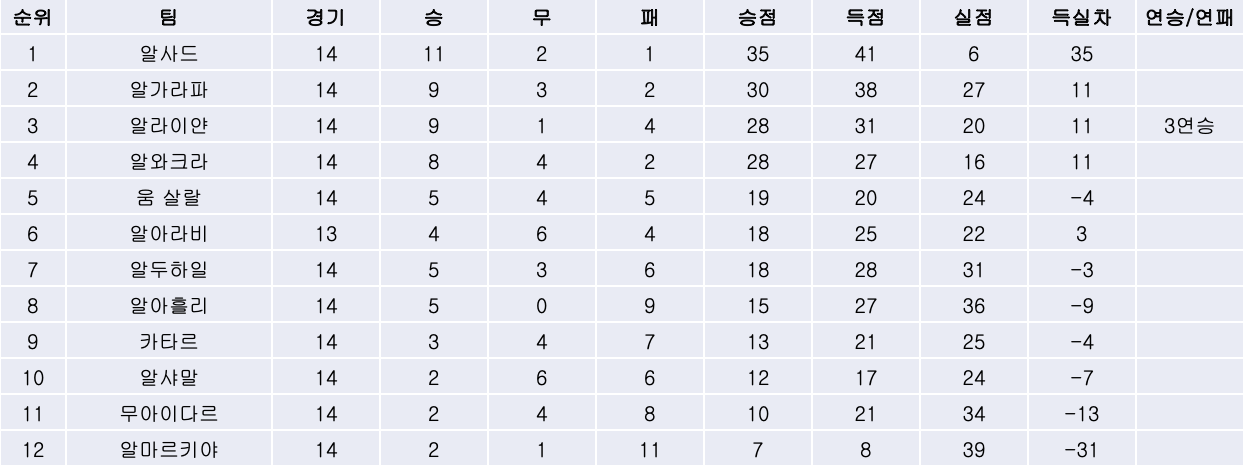 2. 리그 순위