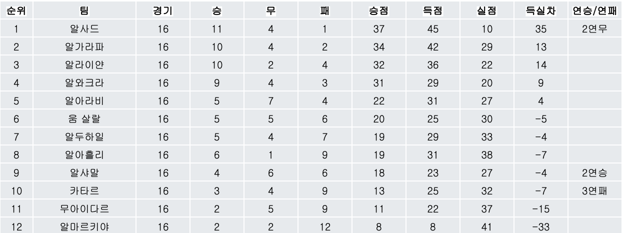 2. 리그 순위