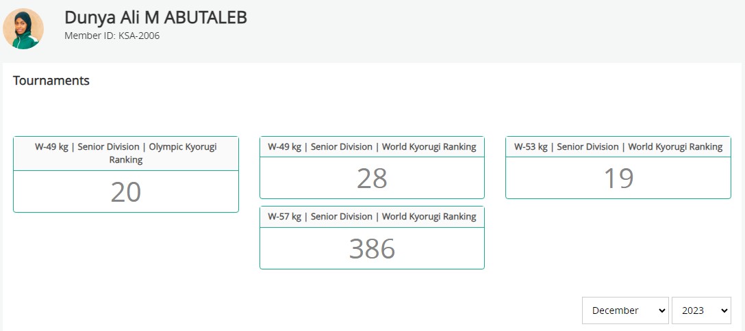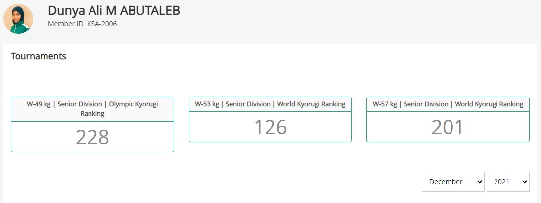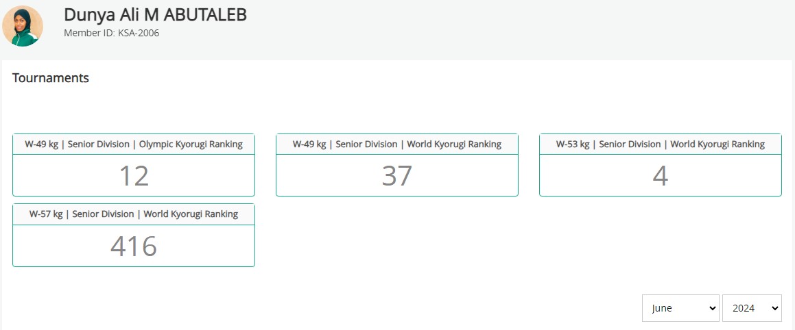 염원하던 올림픽 출전권을 획득한데 이어 6월에는 주종목은 아니지만, 53kg에서의 선수 랭킹이 세계 4위로 상승하게 됩니다. 사우디 역사상 최초로 사우디 남녀 선수를 통틀어 격투 스포츠 세계 5위권 안에 이름을 올린 선수가 된 것이죠.
