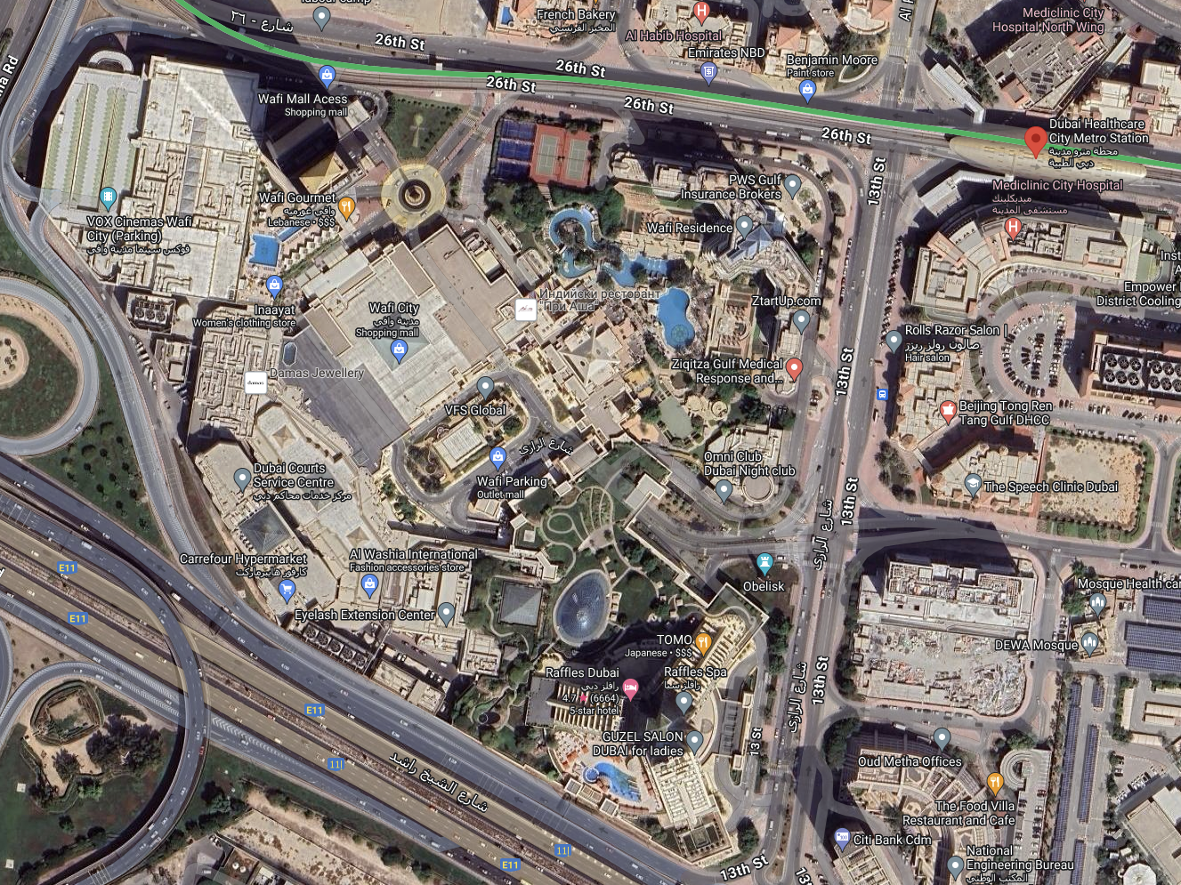 와피 몰은 1990년대에 문을 열었지만, 지금은 새로운 메가 쇼핑몰에 밀려 많이 위축된 쇼핑몰로 랜드마크이자 연결되어 있는 래플스 두바이, 소피텔 오벨리스크와 함께 와피 시티를 구성하고 있는 중심이 되는 쇼핑몰입니다. 외국 관광객들보다는 로컬들이 많이 찾는 곳이죠.