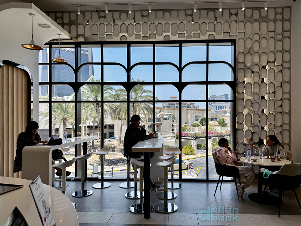 카페 끝에 와피 시티와 소피텔 오벨리스크가 한 눈에 보여 탁 트인 개방감을 주는 대형 창이 있습니다. 와피 몰 특유의 갑갑한 분위기를 상쇄하는 대형 창이라 분위기를 더욱 살려줍니다.