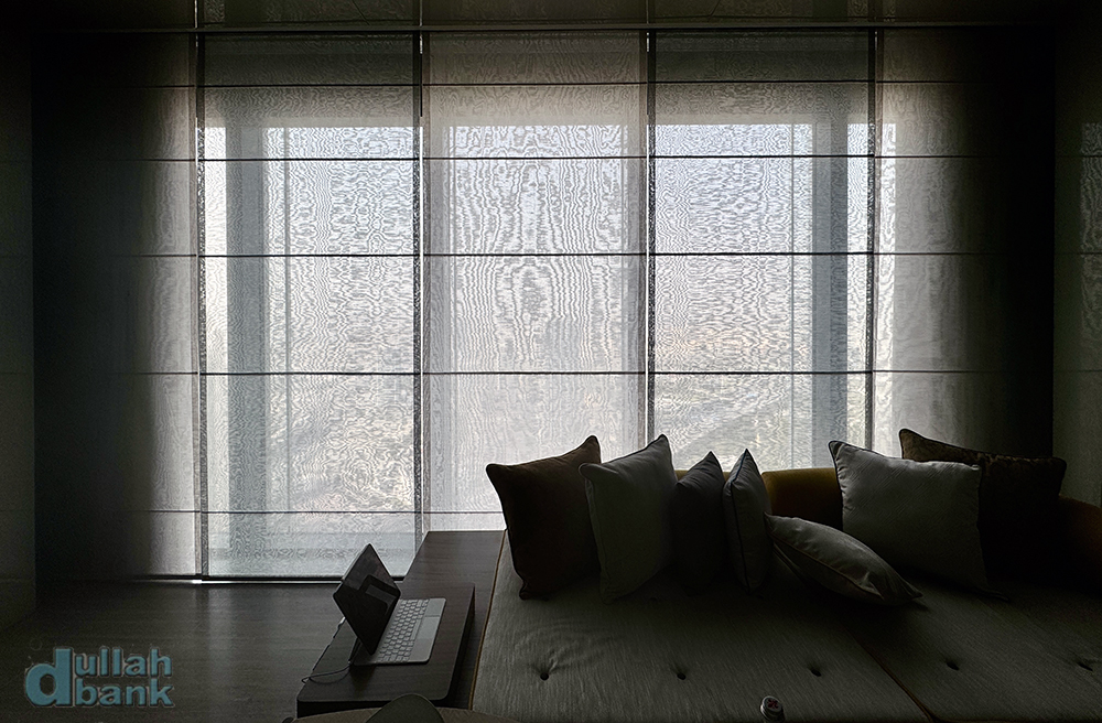 커튼과 속커튼은 전동으로 작동되는데, 암막 커튼은 좌우로 열리고, 속 커튼은 수직으로 내려왔다 올라가는 블라인드 방식인 것이 인상적이었습니다. 암막 상태로 있다가 방에 들어오는 것을 인식한 모션 센서에 의해 두 커튼이 수직과 수평으로 열리는 순간이 왠지 멋지더군요.