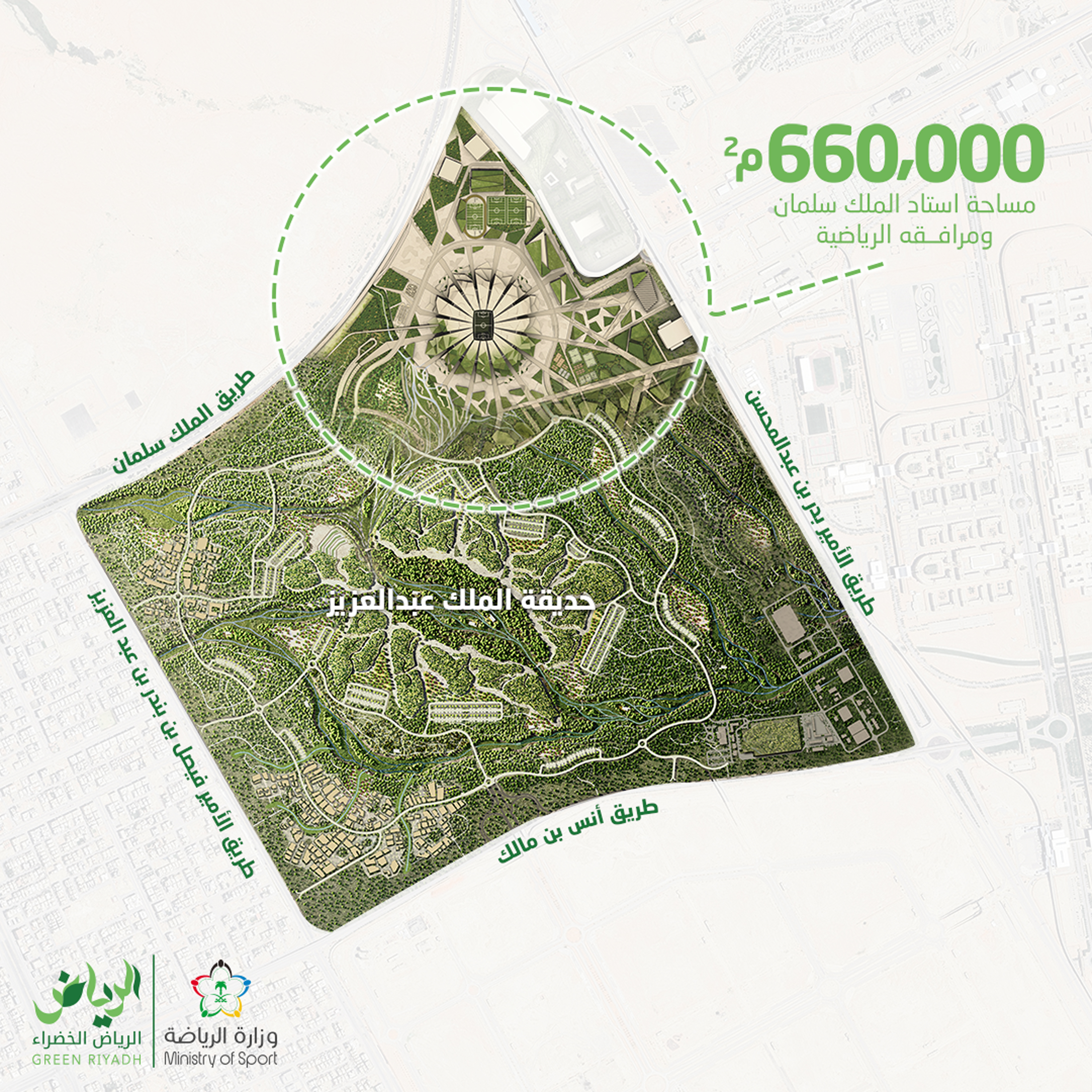 킹 살만 인터내셔널 스타디움이 인상적인 이유는 경기장 자체의 위용도 있지만, 리야드시가 이번주부터 착공에 들어간 초대형 공원 중 하나인 킹 압둘아지즈 파크의 일부라는 점에 있습니다.