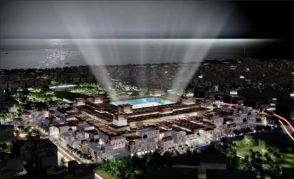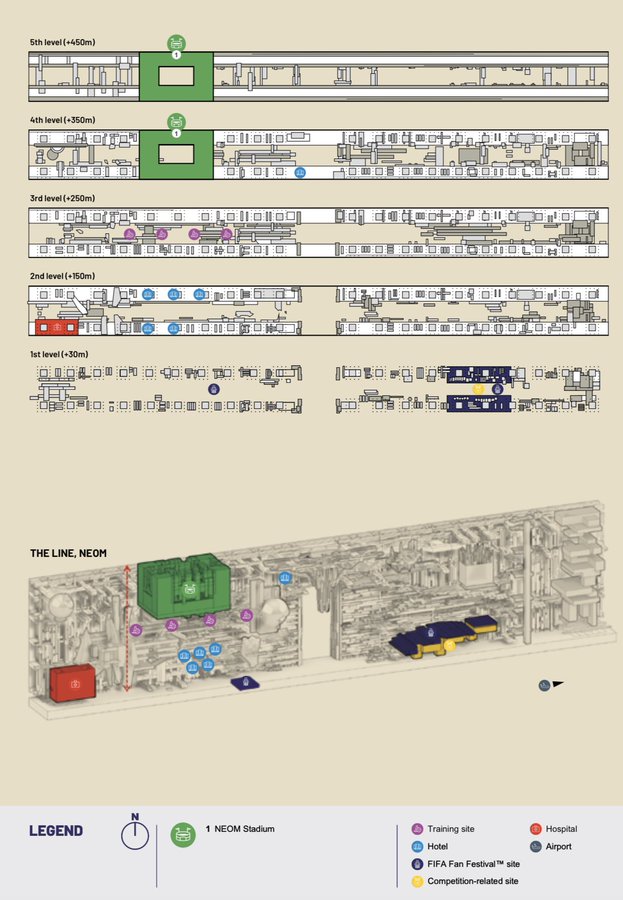 사우디가 이번에 제출한 제안서를 통해 경기장이 들어설 수직도시 라인의 내부 설계도가 처음 공개되었습니다.