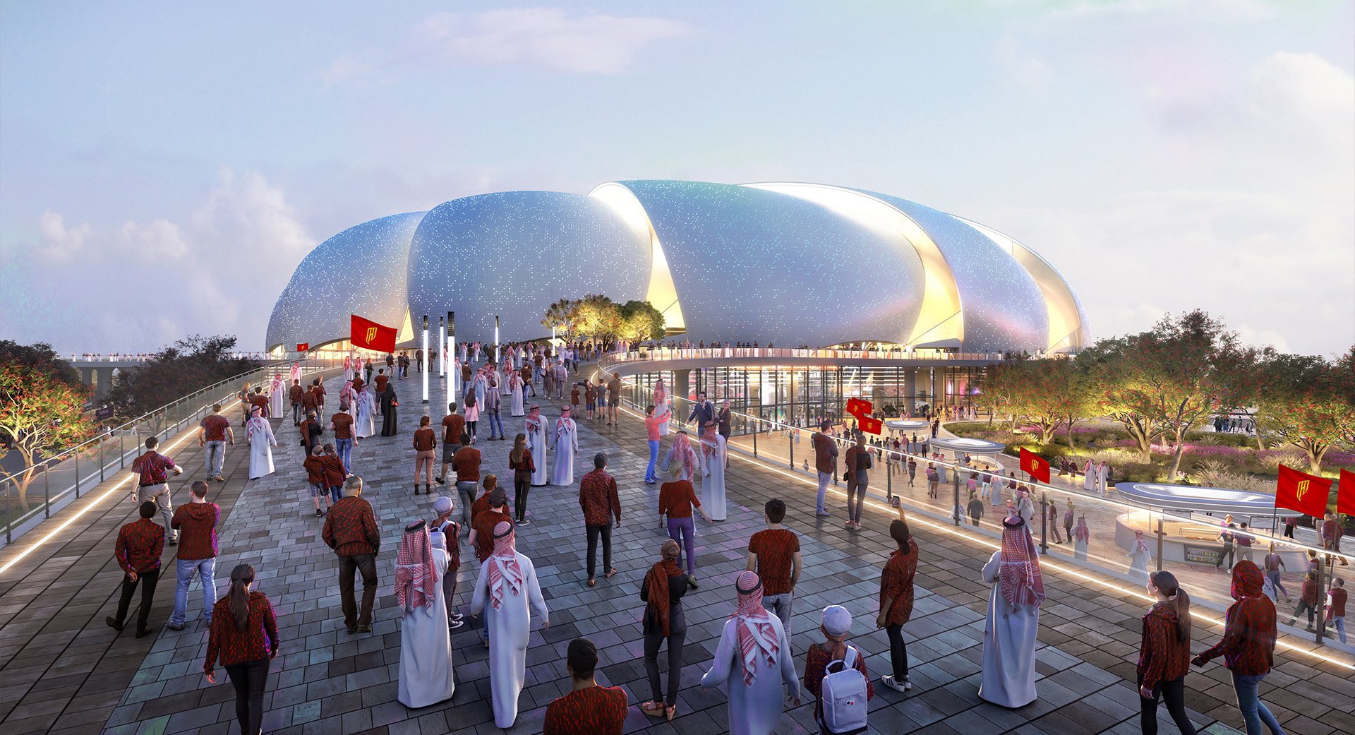 국부펀드 PIF 산하의 디벨로퍼이자 현재 사우디 리그의 메인 스폰서이기도 한 루쉰 그룹은 개최 제안서를 제출한 당일 저녁 리야드 남서부에 건설할 루쉰 스타디움의 디자인을 공개했습니다. 루쉰 스타디움은 "주변 지역에서 하늘로 솟아오르는 현대적인 크리스탈 디자인"이 특징으로 "사우디 중부 지역의 도시 구조와 건축학적 특징"에서 영감을 받았다고 밝힌 바 있습니다.