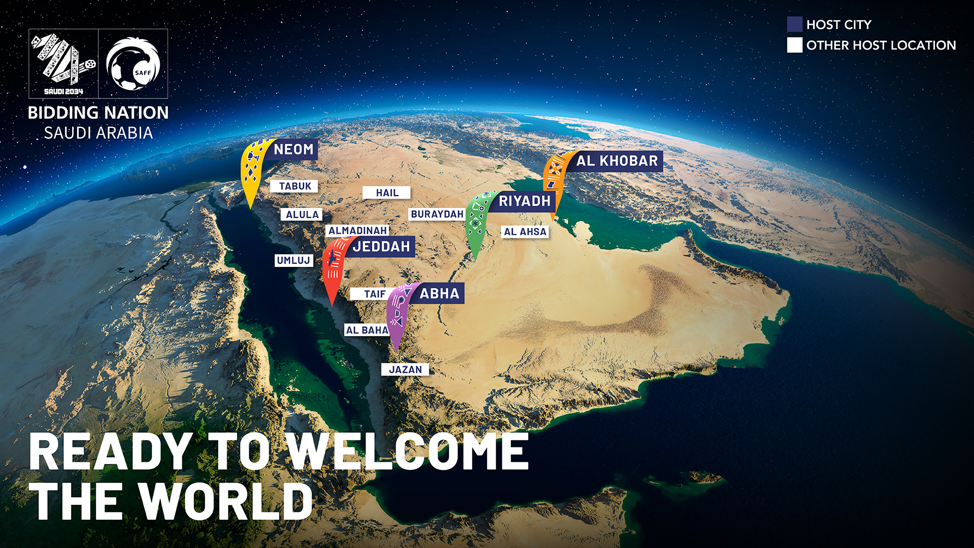 2027 AFC 아시안컵 유치에 이어 2034 FIFA 월드컵을 준비하게 될 사우디는 현재까지 3개 도시 8개 경기장을 월드컵 경기장으로 내정한 것으로 알려졌습니다. 2027 아시안컵 개최를 확정지었을 당시에만 해도 2030 월드컵 공동개최 추진을 의식한 듯 경기장의 수용규모를 작게 계획했던 사우디는 월드컵 유치가 사실상 성공함에 따라 아시안컵을 위해 지으려던 일부 경기장의 설계를 대폭 업그레이드하는 방향으로 변경하고 있습니다.