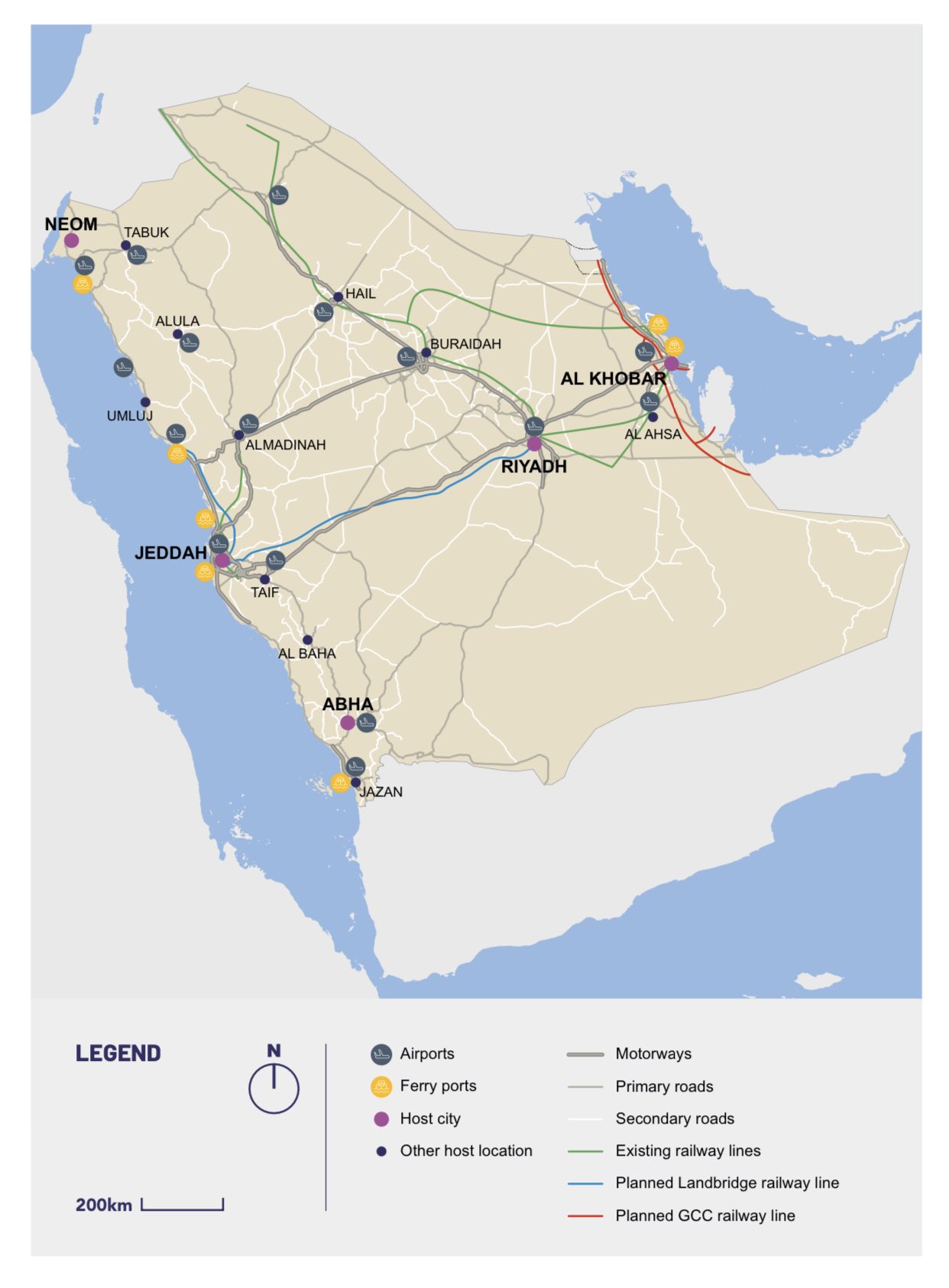 사우디는 5개 도시에서 경기가 열릴 경기장과 이를 포함한 15개 도시에 준비할 훈련 캠프를 오가기 위한 교통망도 확중하게 됩니다.