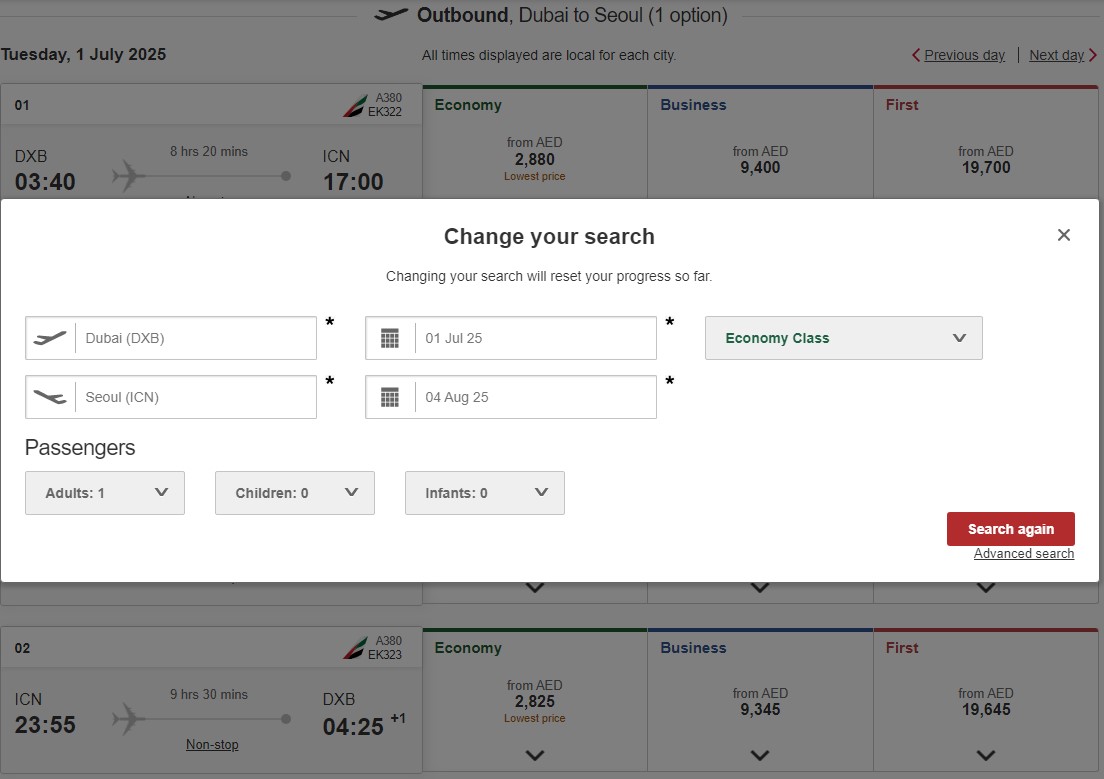 현시점에서는 항공사 공홈에서 예약 가능한 내년 8월초까지의 일정으로 이코노미를 검색하면 3클래스만 보이고, 프리미엄 이코노미를 검색해보면 비즈니스/퍼스트가 나오거든요.