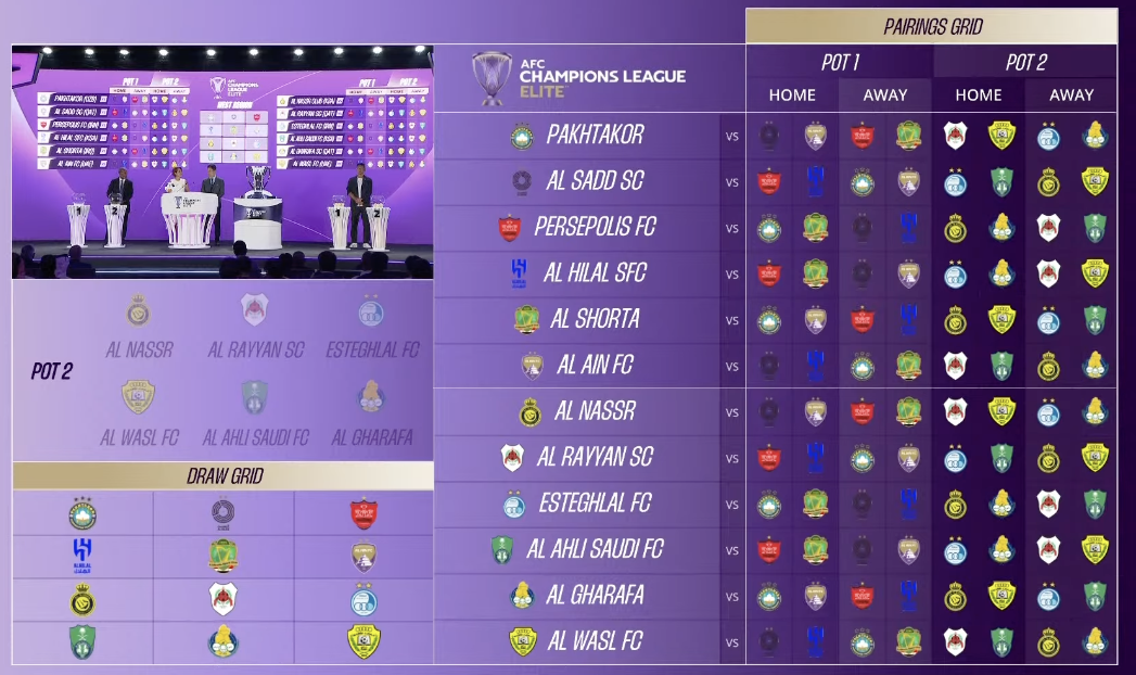 지난 시즌 알아인의 우승을 끝으로 전통적인 조별리그 방식을 탈피해 전혀 새로운 방식으로 개편된 아챔 엘리트의 조추첨이 오늘 열려 리그 스테이지 대진이 확정되었습니다.