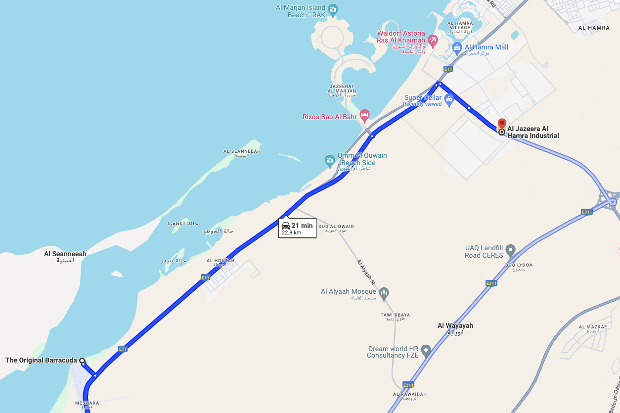 라스 알카이마 외곽에 자리잡은 알자지라 알함라 산업단지는 2020년대들어 바라쿠다의 위상을 위협하는 대형 셀라들이 하나둘씩 문을 열기 시작하면서 더욱 싼 가격에 술을 살 수 있는 성지가 되었습니다. 술에 따라서는 공항 면세점보다도 싸고 되려 한국보다 싼 가격에 술을 파니까요.