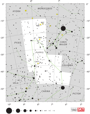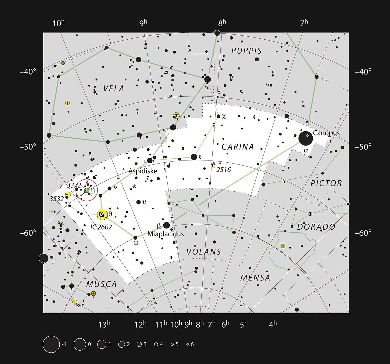 - 돛자리 감마 Gamma Velorum- 남반구 별자리 돛자리에서 가장 밝은 최소 여섯 개의 별로 이루어진 다중성계 (겉보기 등급 +1.75)로 지구에서 약 840광년 떨어진 곳에 있으며 아랍에서는 수하일 알무흘리프 (سهيل المحلف)이라 불렸고, 아폴로 1호 승무원이었던 거스 그리섬이 동료 로저 차피를 놀려주려는 의도에서 그의 이름 Roger의 철자를 거꾸로 읽은 레고르 (Regor)라 붙이기도 했다는데, IAU 항성명칭목록에 등재된 공식 명칭은 아니라고 하네요. 또한 이 별은 어두운 흡수선상에 밝은 방출선을 보여주기 때문에, '남반구 하늘의 스펙트럼 보석'으로도 불리기도 합니다.