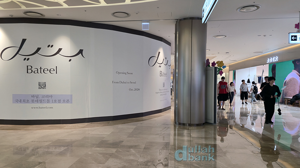 9월 휴가를 맞아 한국에 체류 중인 둘라는 잠실에 있는 롯데월드몰을 찾았다가 입점준비 중인 한 매장 간판에 시선이 꽂혔습니다. 한국에서 보기드문 아랍어 간판에 선명하게 적힌 그 이름 바틸 (Bateel).