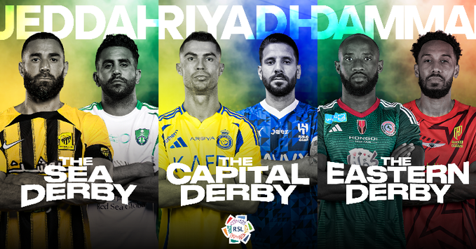 1) 리그 9라운드는 알잇티하드와 알아흘의 젯다 더비 (바다 더비), 알나스르와 알힐랄의 리야드 더비 (수도 더비), 알잇티파끄와 알까드시아의 담맘 더비 (동부 더비)까지 사우디 3대 도시의 더비가 편성되었습니다. 공교롭게도 주중에 있었던 국왕컵 16강전에서 알잇티하드, 알힐랄, 알까드시아는 8강에 진출한 반면, 일찌감치 32강전에서 광탈한 알아흘리에 이어 알나스르와 알잇티파끄는 16강전에서 나란히 탈락하며 더비 위크를 앞두고 희비가 엇갈린 상태에서 만나게 되었습니다.