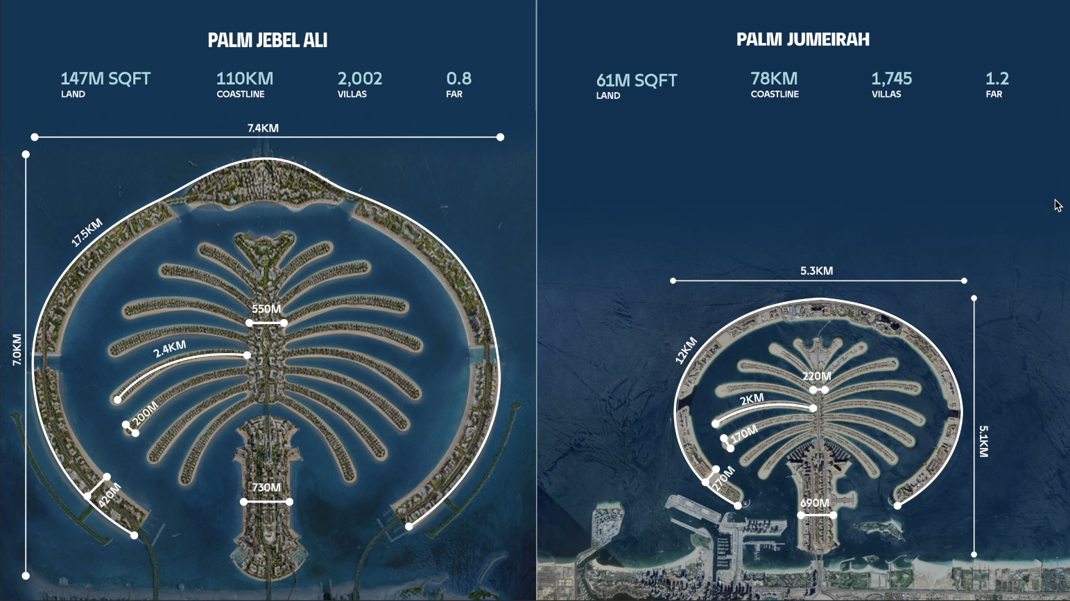그럼... 팜 제벨 알리는 팜 주메이라에 비해 얼마나 큰 인공섬일까요?