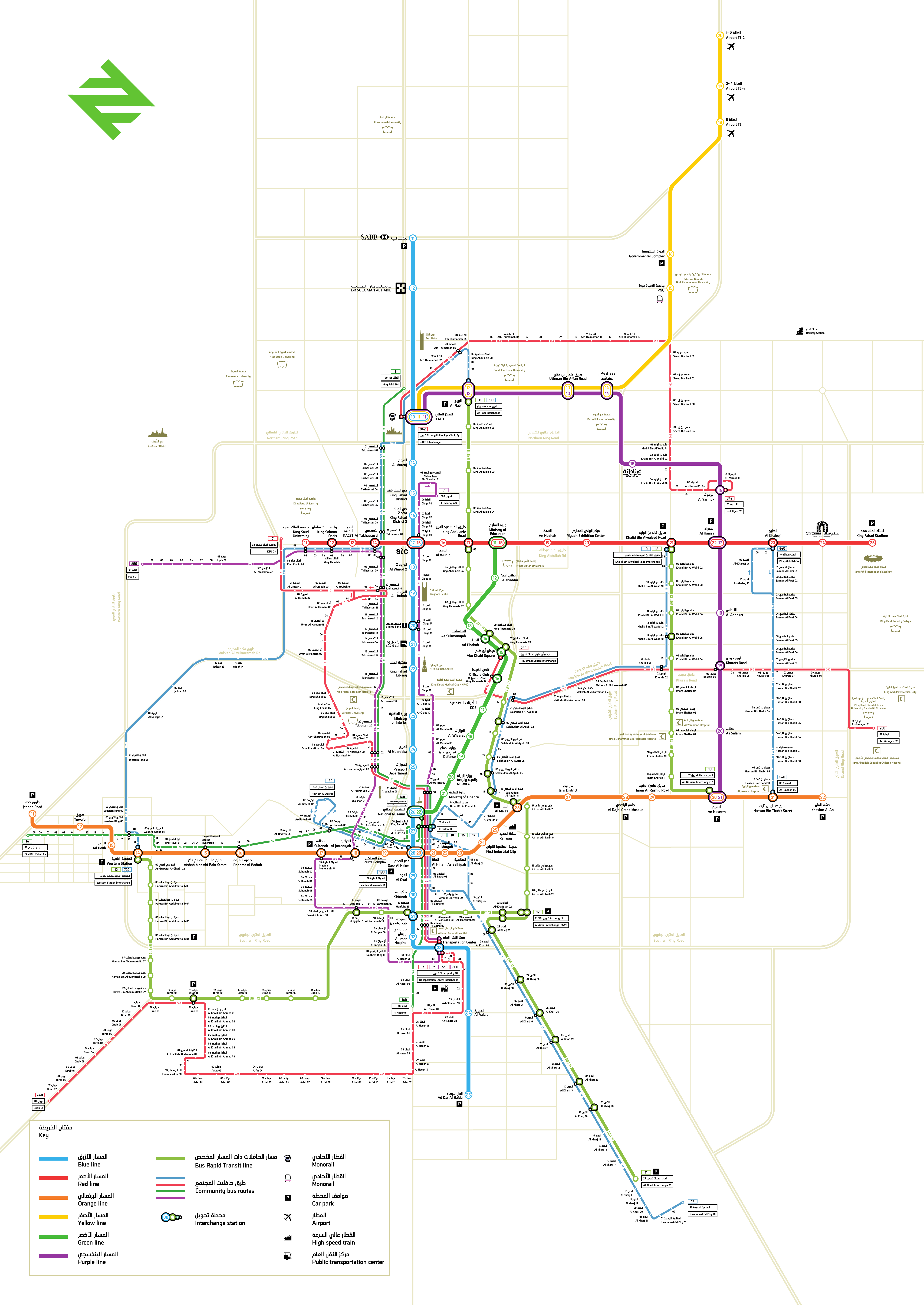 | 4호선 (옐로우 라인) | 킹 칼리드 인터내셔널 에어포트 로드 | 29.6km | 10개역 | 2024년 12월 1일 |