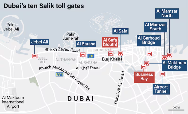 두바이 톨게이트 시스템인 SALIK이 2007년 7월 1일 서비스를 개시한 이래 17년 넘게 톨게이트 수 (지난 주말부터 2개 추가해 10개)를 늘려왔을 뿐 4디르함의 고정 요금제를 적용한 통행료를 징수해 왔지만, 2025년 1월 말부터는 이용 시간에 따라 차등 요금을 적용하는 탄력 요금제를 적용하게 됩니다.