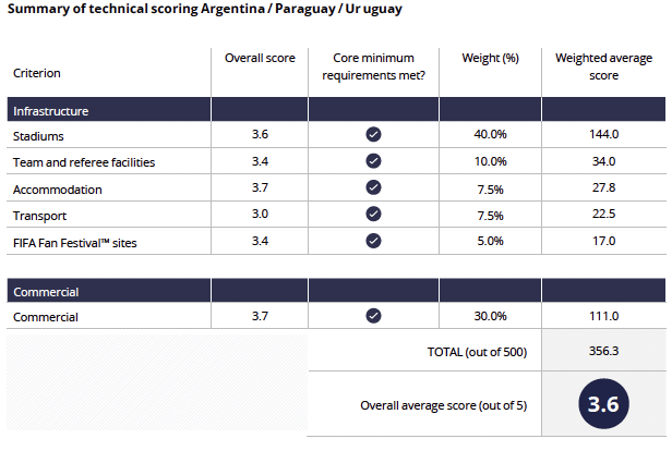 2) 아르헨티나/파라과이/우루과이 공동 개최 제안서: 356.3점/500점