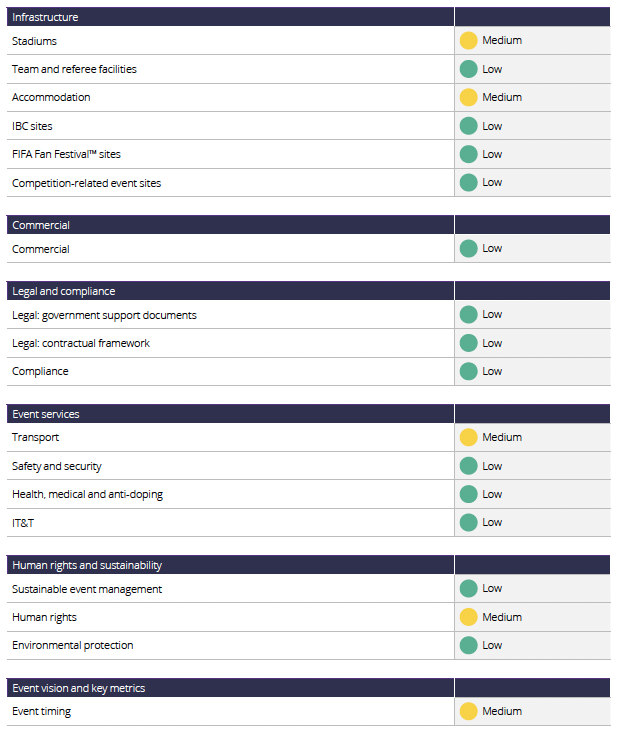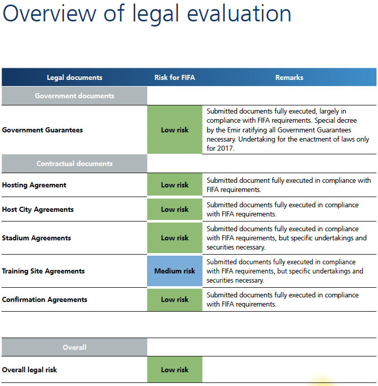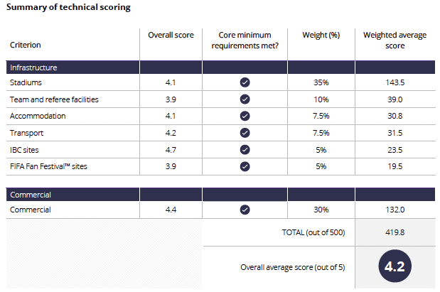 현재까지 가장 성공적인 월드컵으로 평가받고 있는 카타르 월드컵의 유치 제안 평가 보고서에는 인권 문제가 따로 명시되지는 않았지만, 러시아와의 유치전에서 패하고 화풀이 대상이 필요했던 영국 미디어들은 사실을 날조해가며 부정적인 여론 형성에 기를 쓴 바 있습니다. 이 평가 보고서에는 점수가 따로 언급되지 않았지만 리스크 평가 결과로 봐도 사우디가 높은 평가를 받기는 했네요.