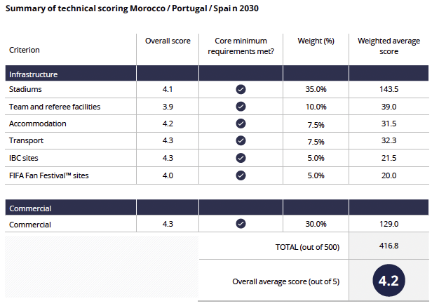 1) 모로코/포르투갈/스페인 공동 개최 제안서: 416.8점/500점