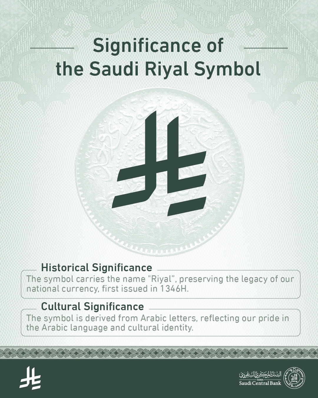 새 통화기호는 히즈리력 1346년 (1927년 6월 30일~1928년 6월 17일)에 처음 발행된 사우디 통화의 유산을 보존하기 위해 리얄이란 이름을 담고 있으며,